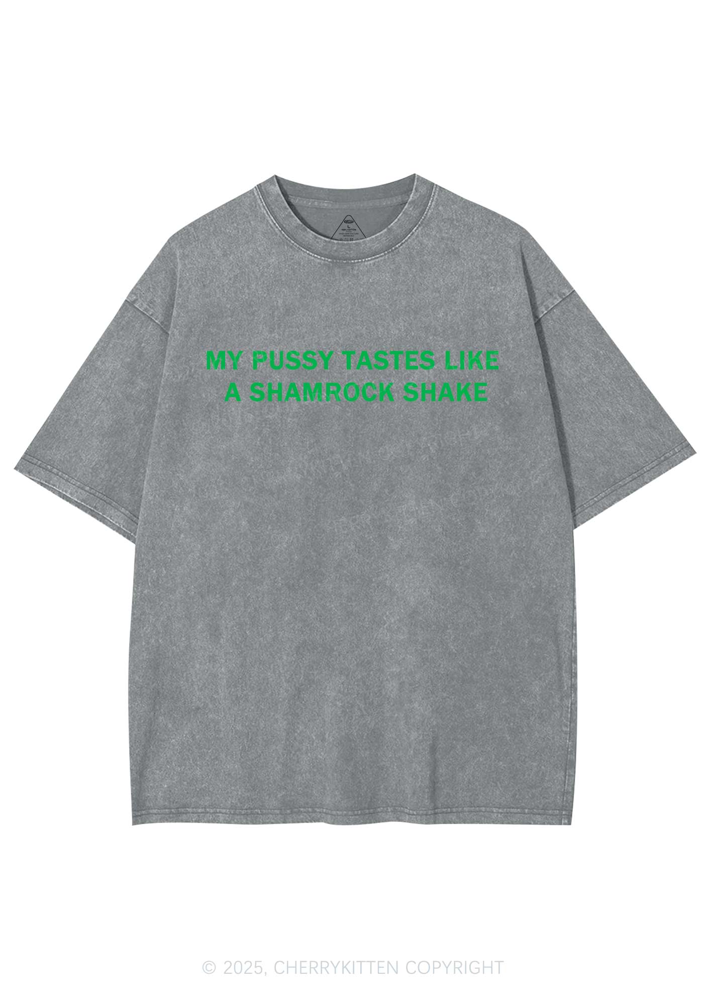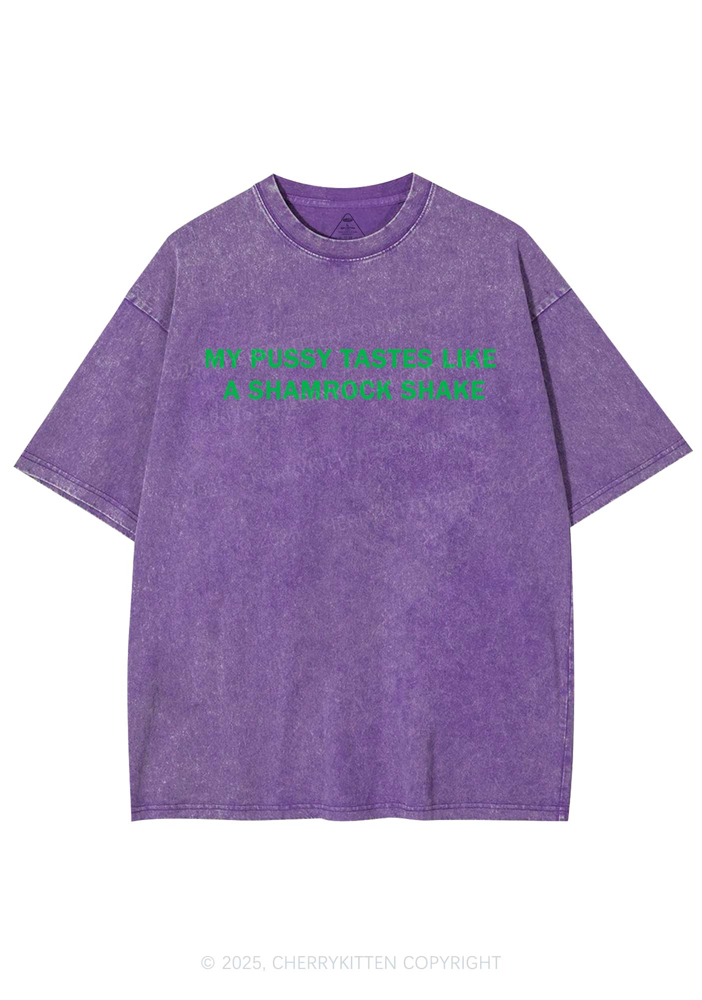Puxxy Tastes Like Shamrock Shake St Patricks Y2K Shirts Washed Tee Cherrykitten