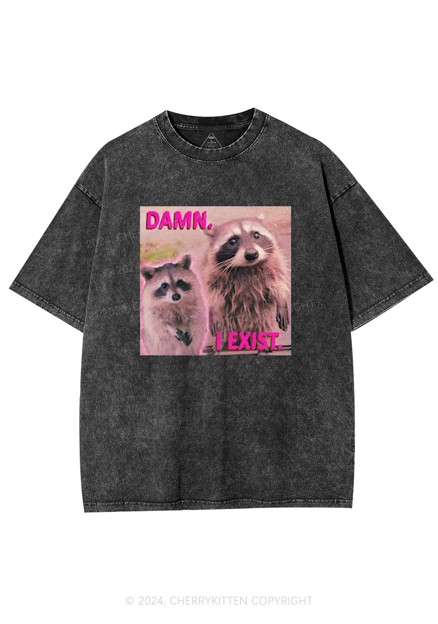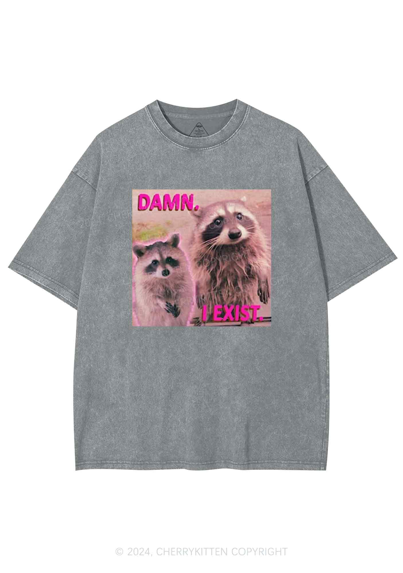 Raccoon I Exist Y2K Washed Tee Cherrykitten