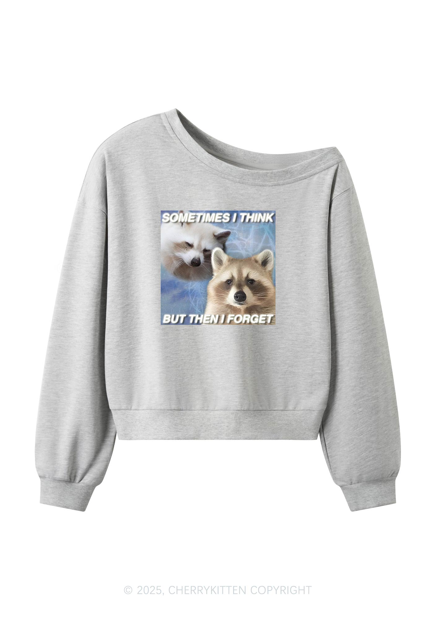 Raccoon Sometimes Think Y2K Off Shoulder Sweatshirts Cherrykitten