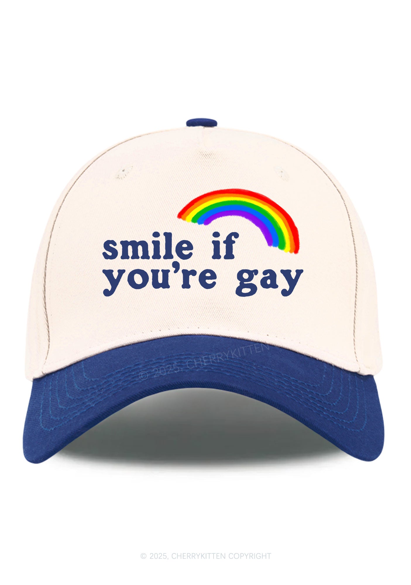 Rainbow Smile If You're Gay Pride Y2K Color Block Baseball Cap Cherrykitten