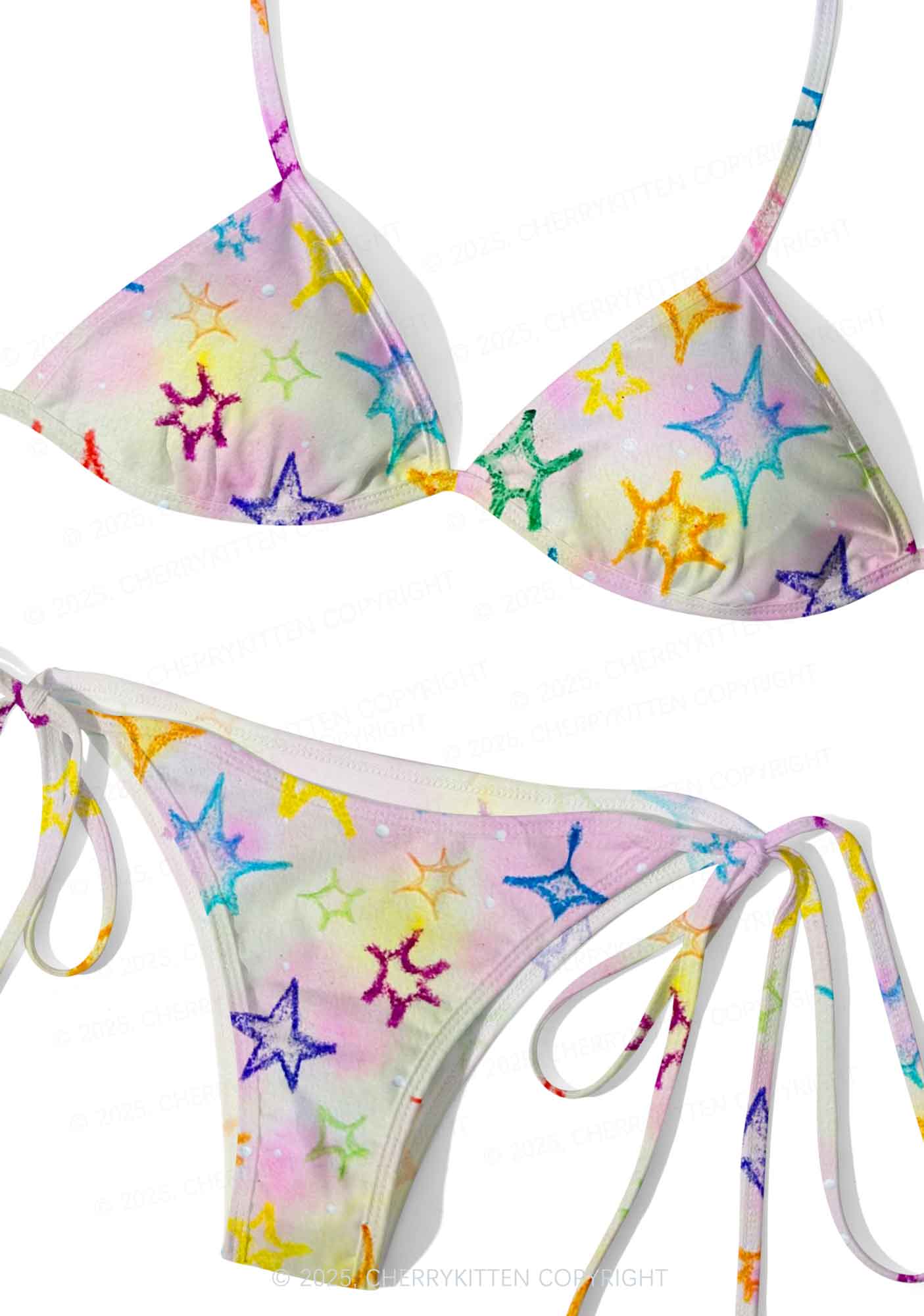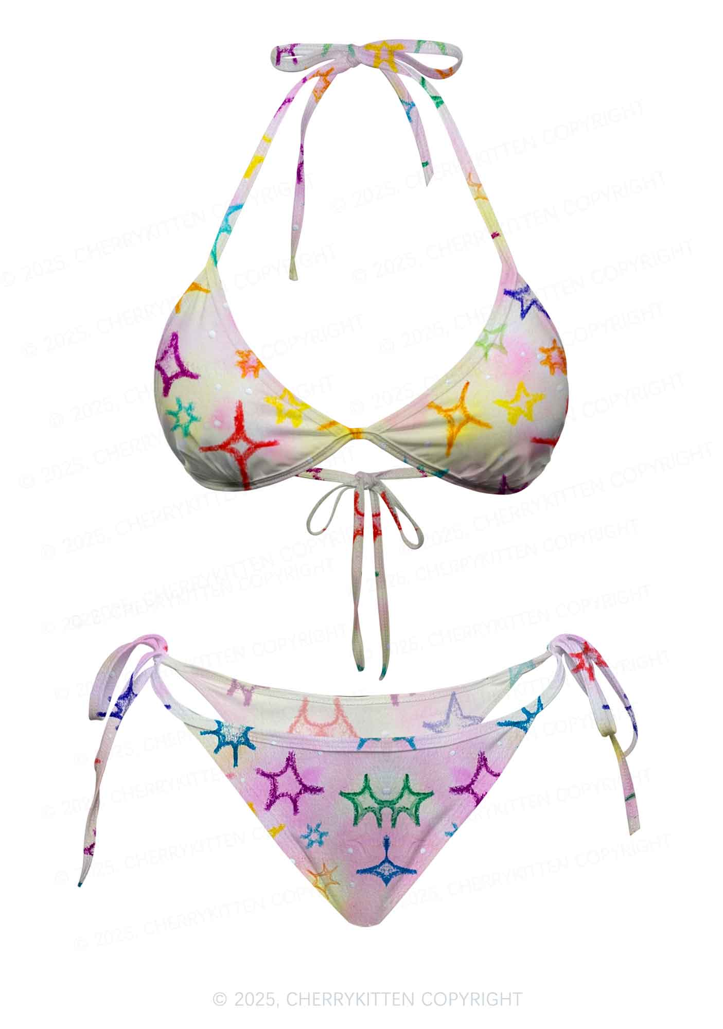 Rainbow Starburst Y2K Print Bikini Set Cherrykitten