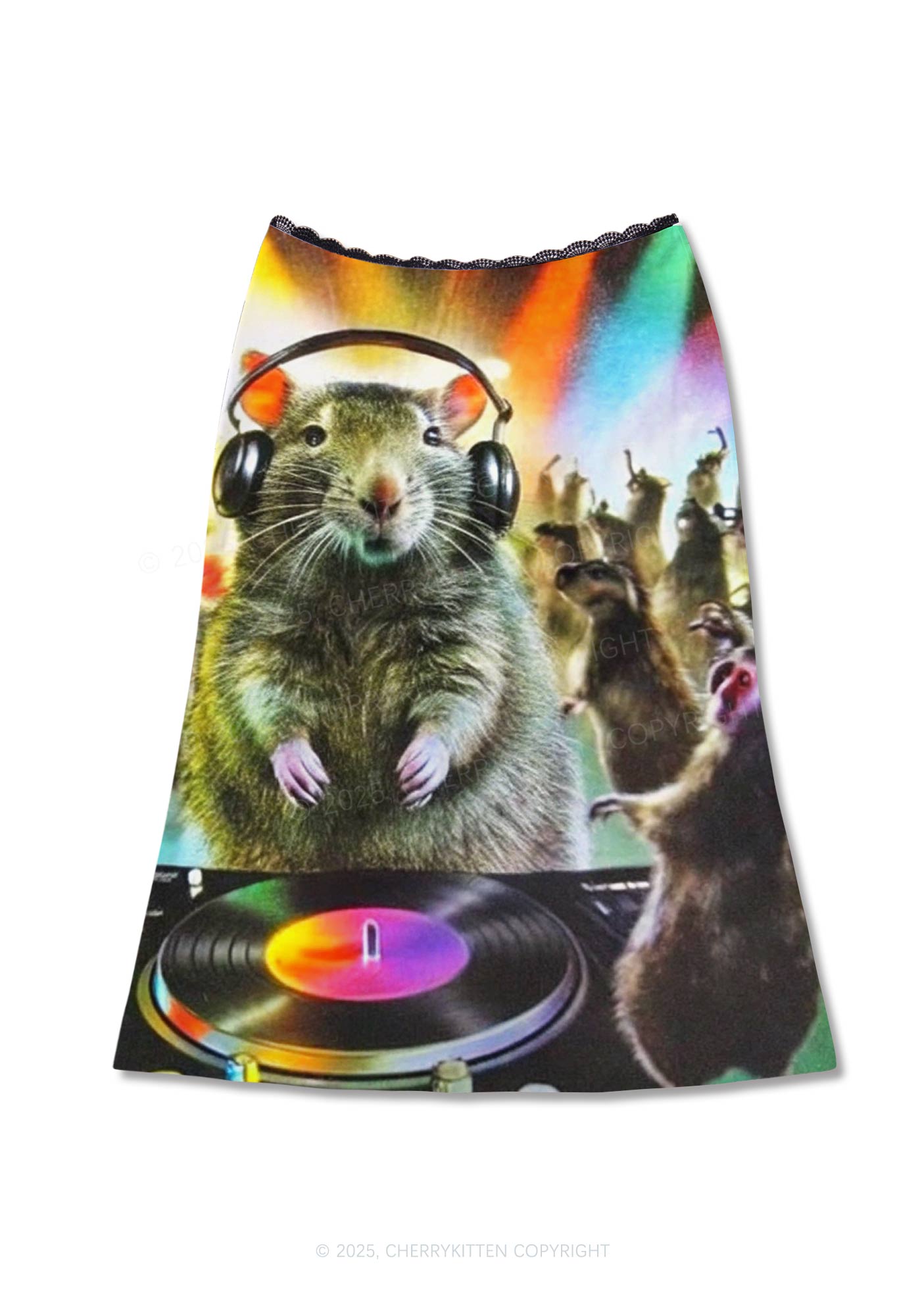 Rats Party Y2K Print Midi Skirt Cherrykitten