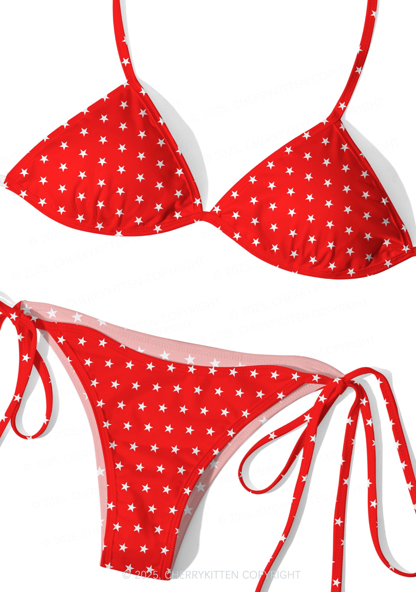 Red Star Y2K Print Bikini Set Cherrykitten