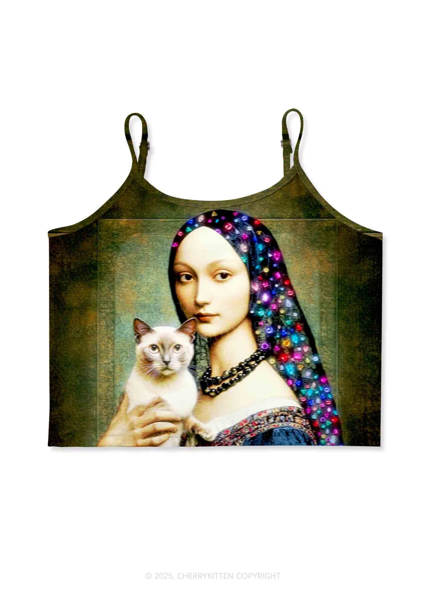 Renaissance Lady With Cat Y2K Print Cami Crop Top Cherrykitten