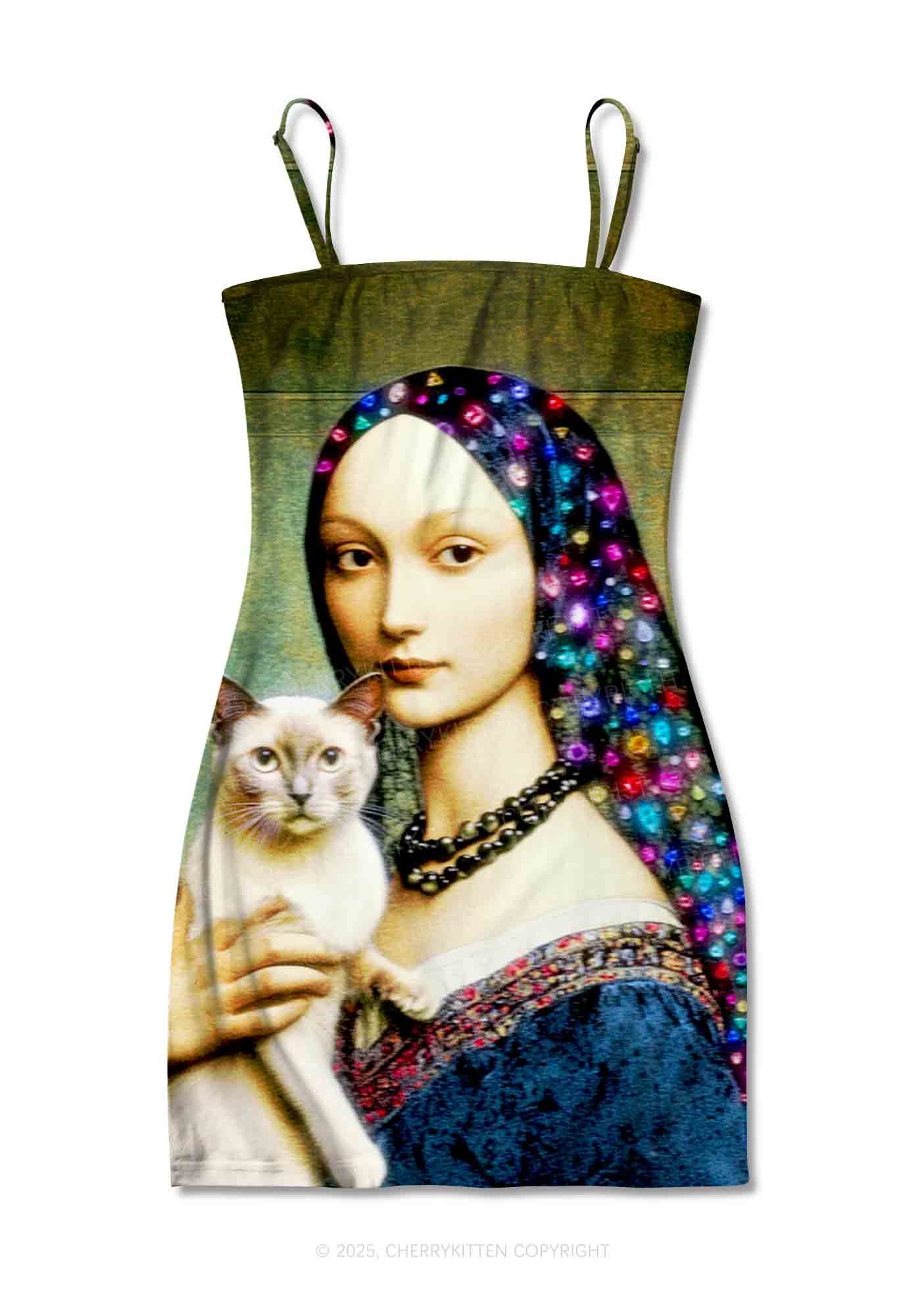 Renaissance Lady With Cat Y2K Print Slip Dress Cherrykitten