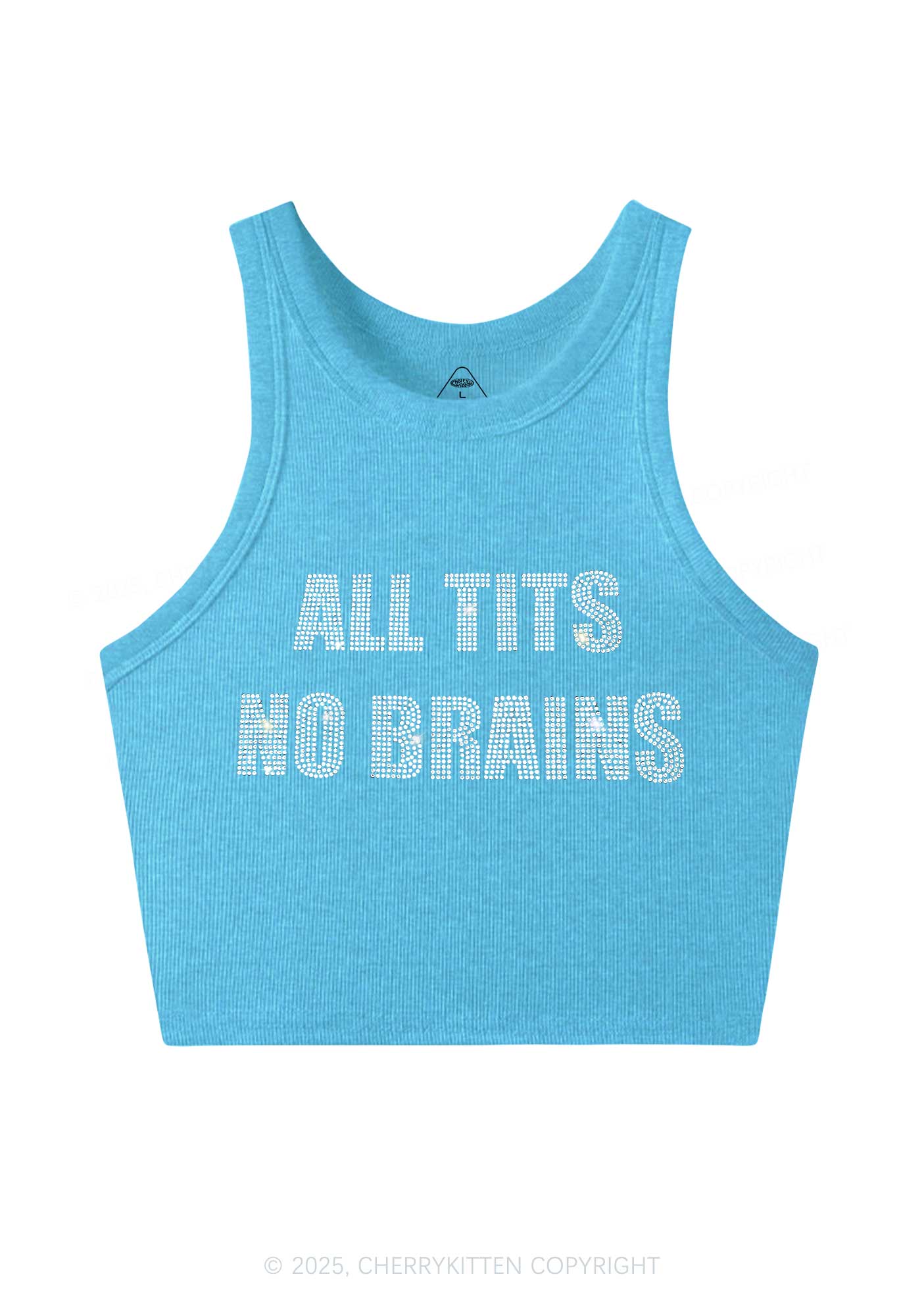 Rhinestone All Txts No Brains Y2K Crop Tank Top Cherrykitten