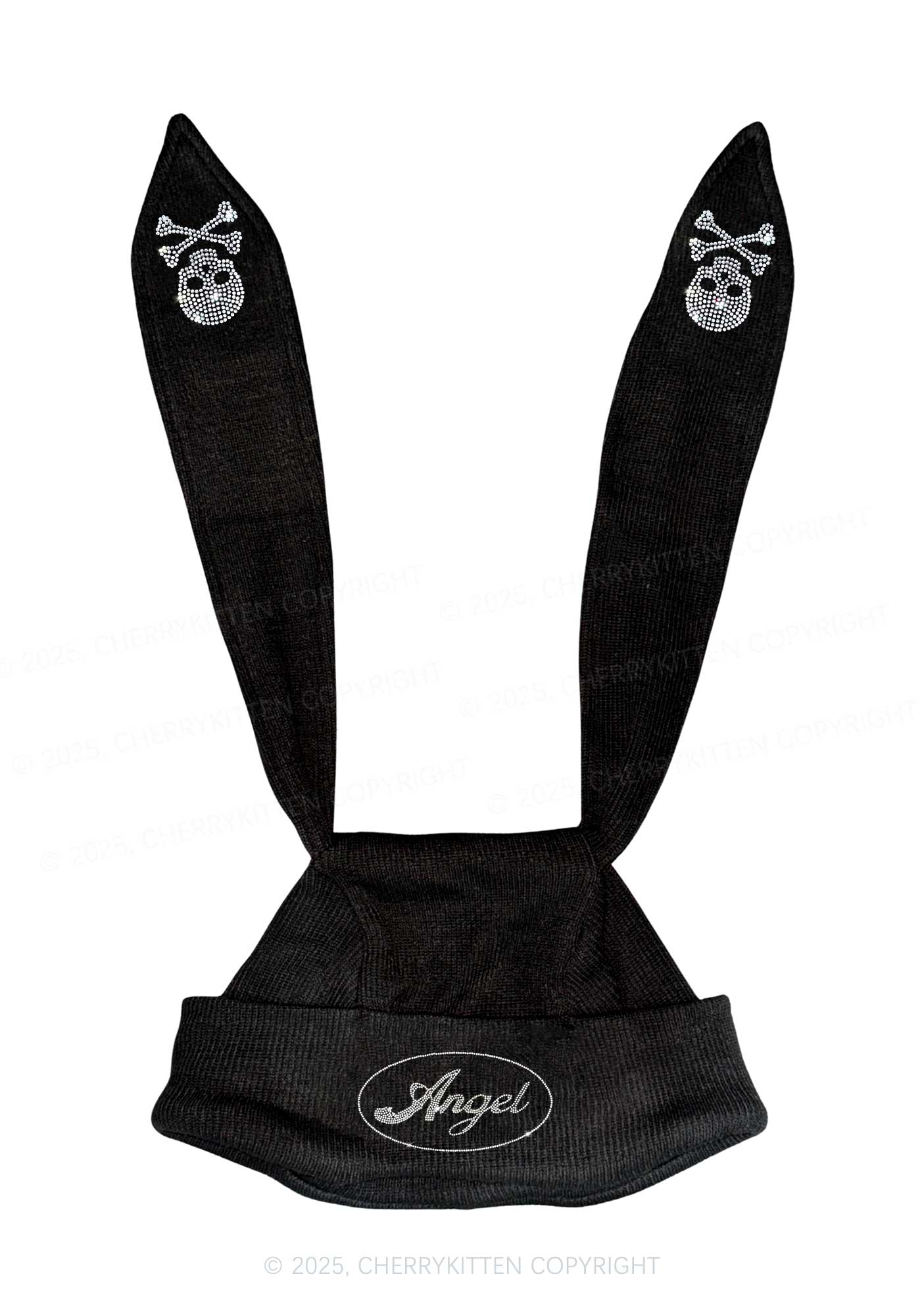 Rhinestone Angel Y2K Bunny Ear Knitted Hat Cherrykitten