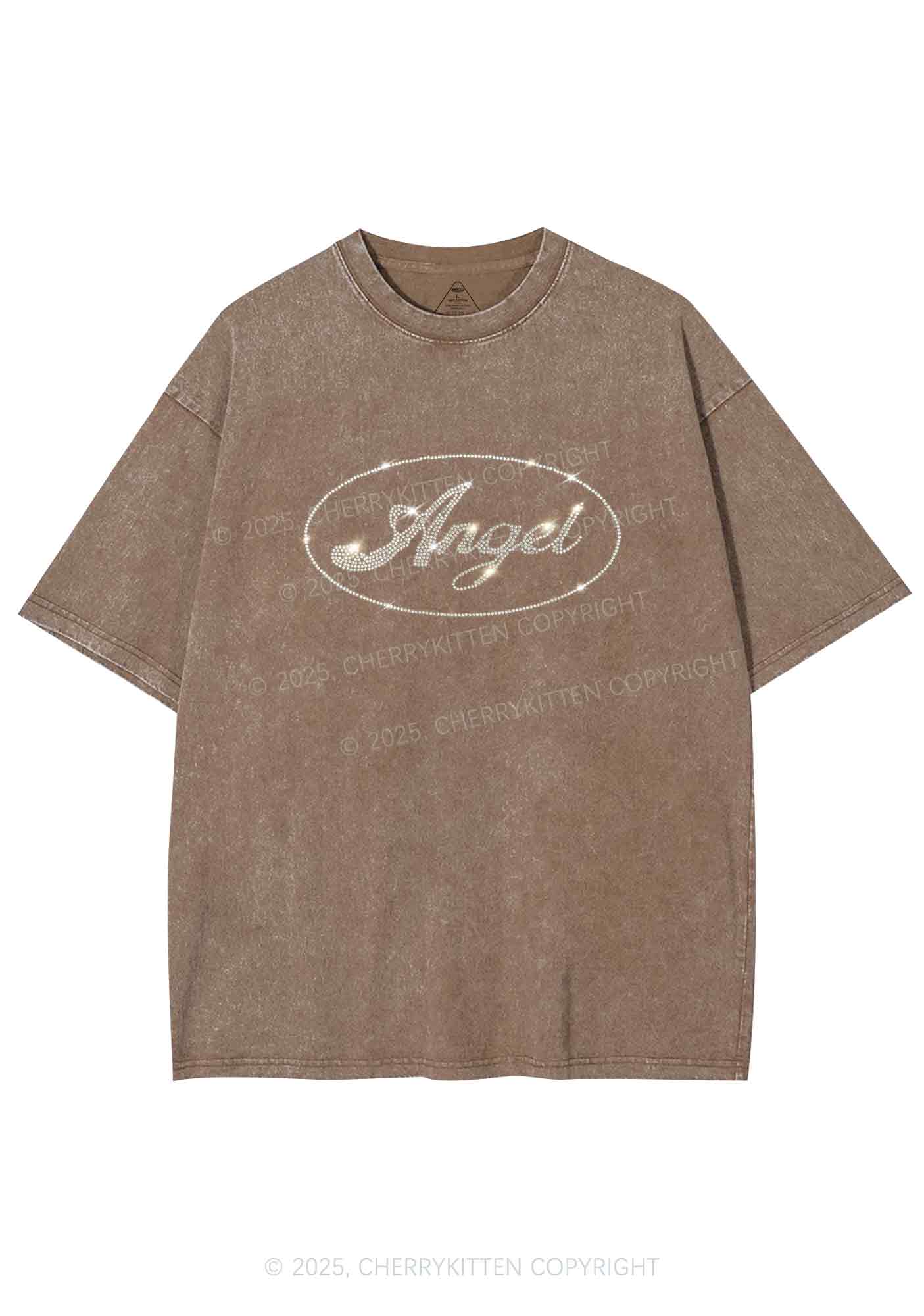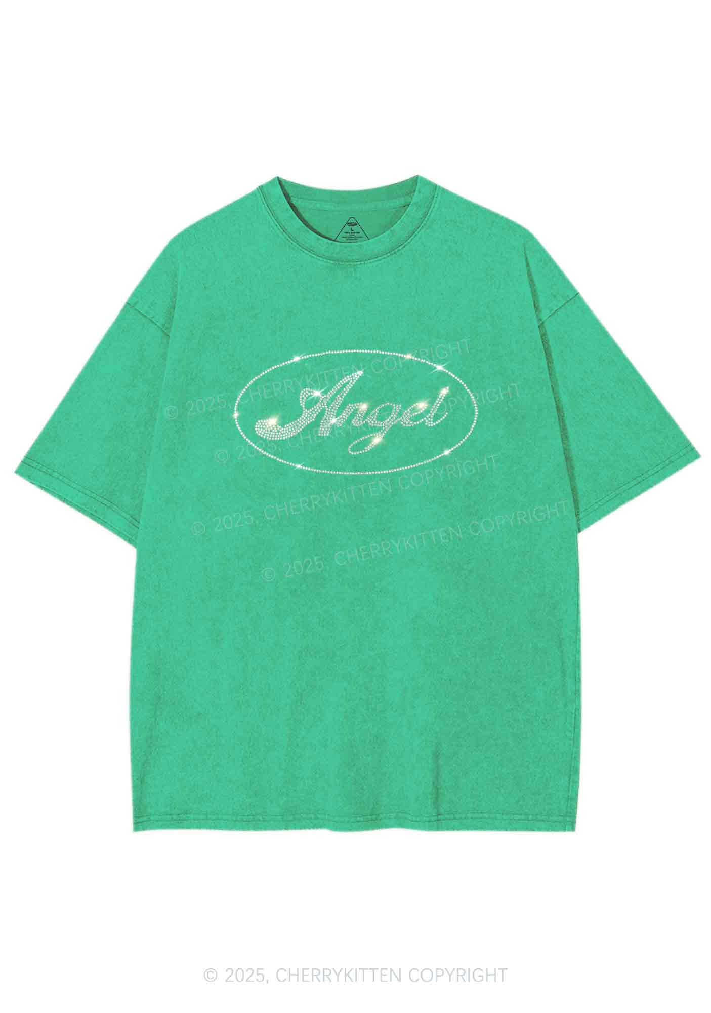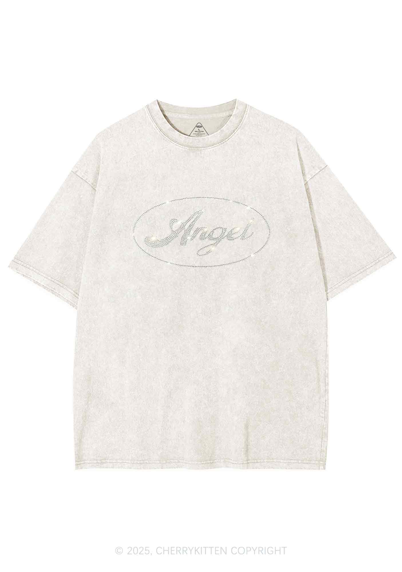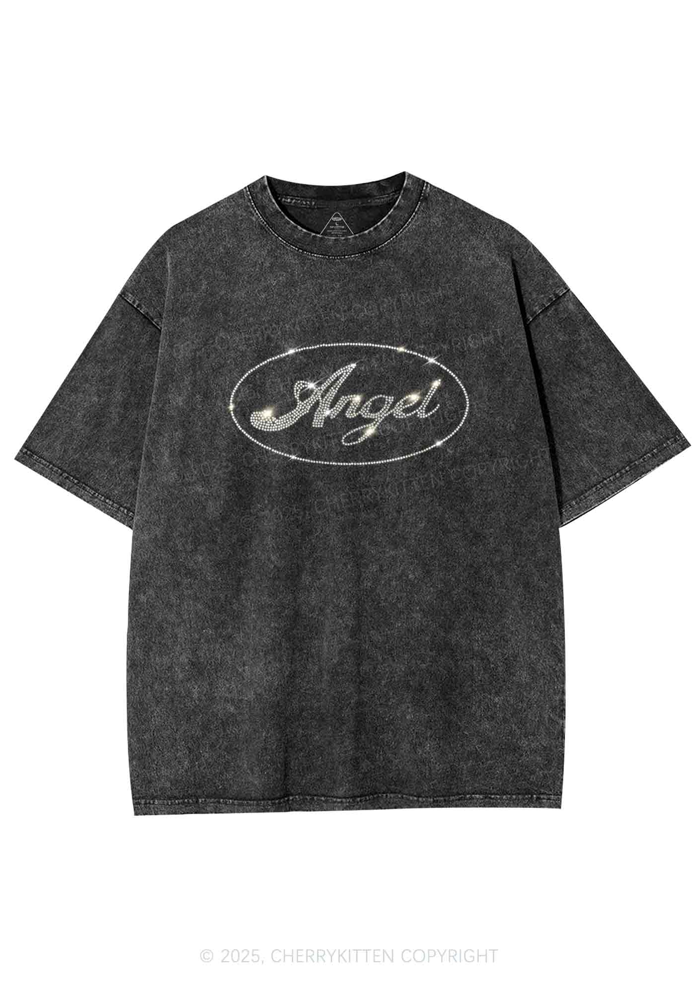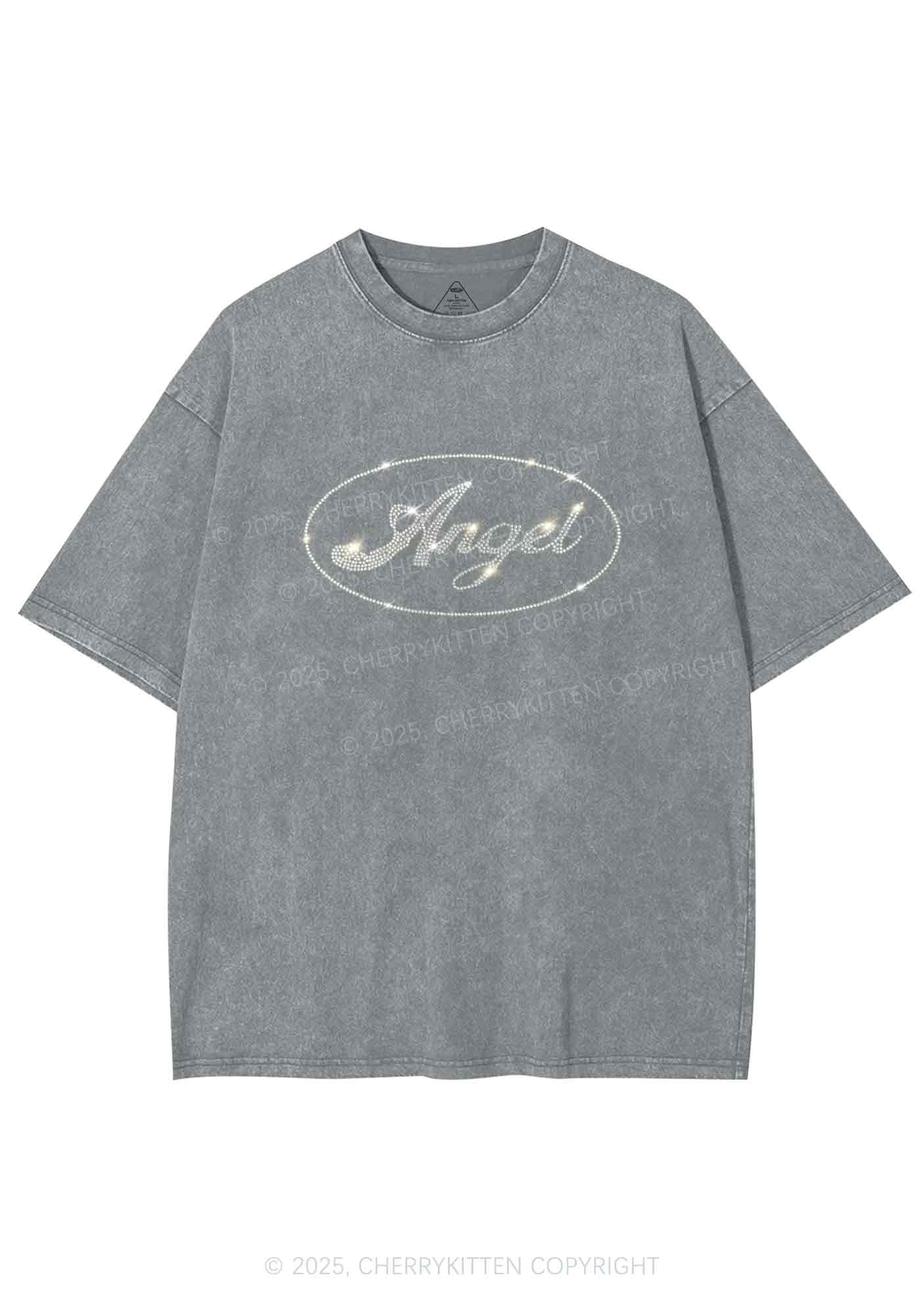Rhinestone Angel Y2K Shirts Washed Tee Cherrykitten