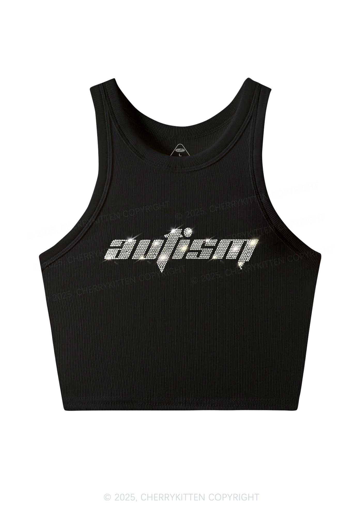Rhinestone Autism Y2K Crop Tank Top Cherrykitten