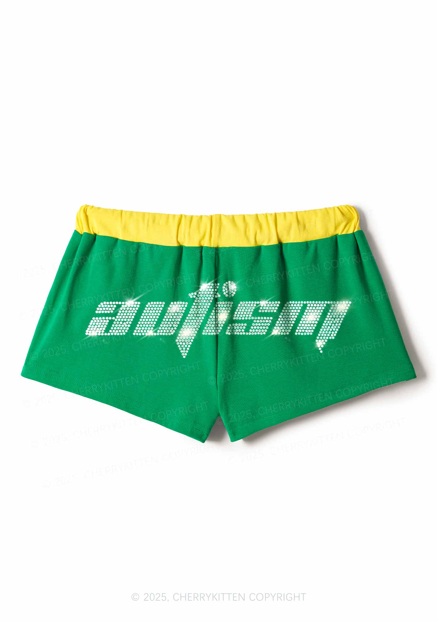 Rhinestone Autism Y2K Drawstring Mini Shorts Cherrykitten