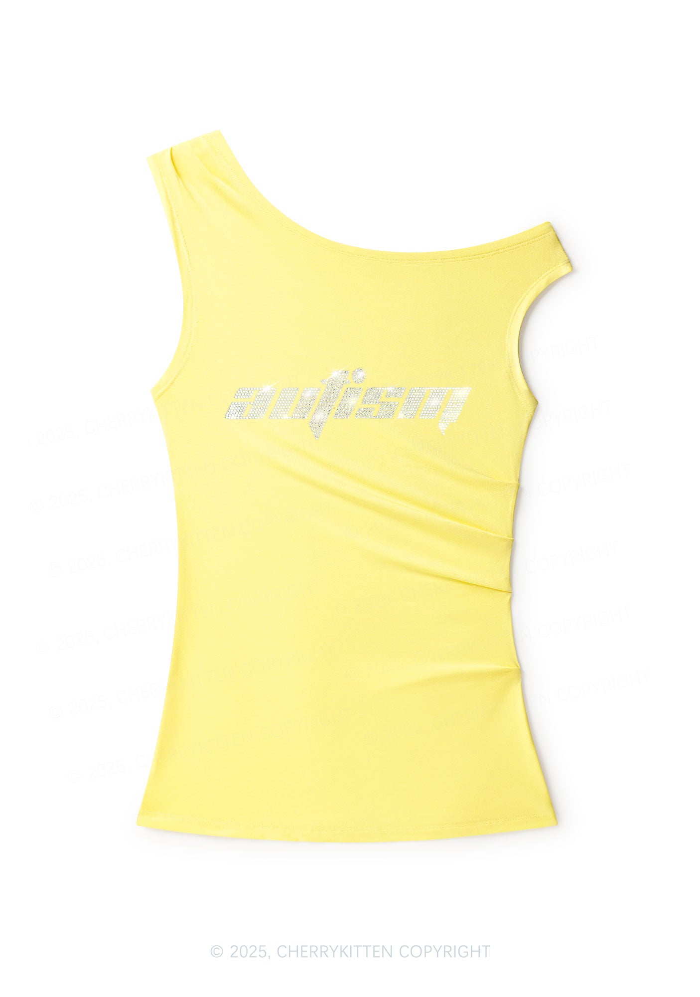 Rhinestone Autism Y2K Off Shoulder Tank Top Cherrykitten