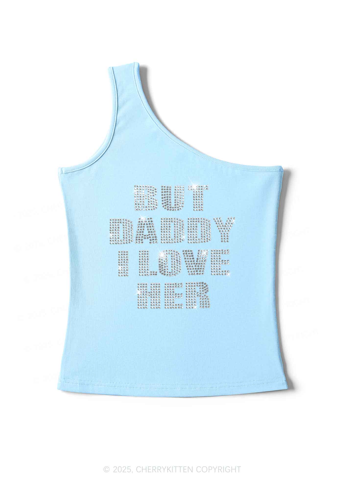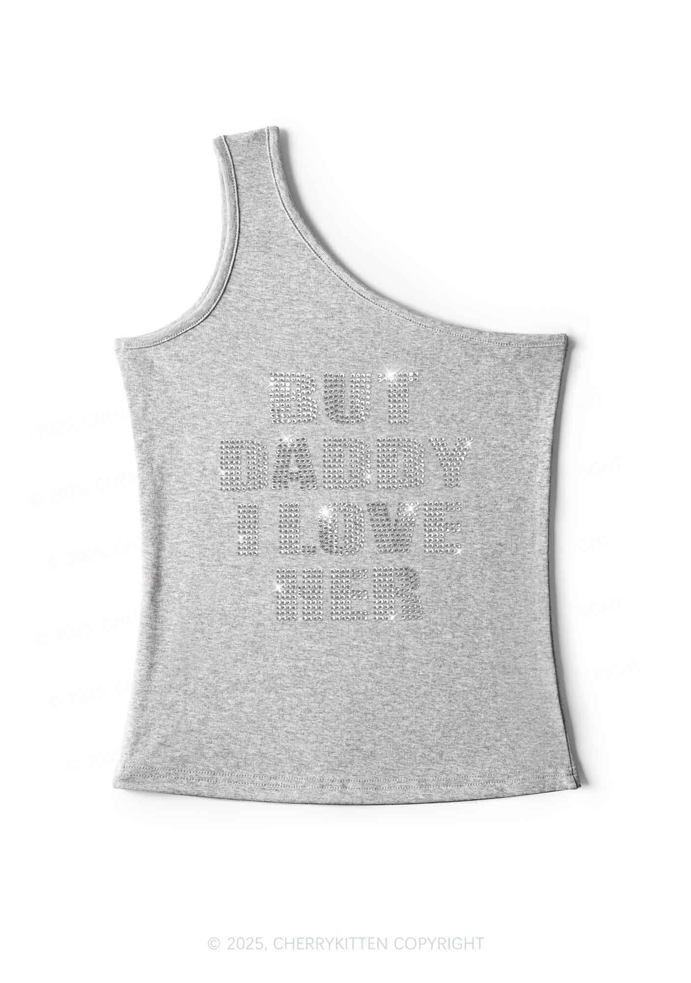 Rhinestone But Daddy I Love Her Pride Y2K One Shoulder Tank Top Cherrykitten