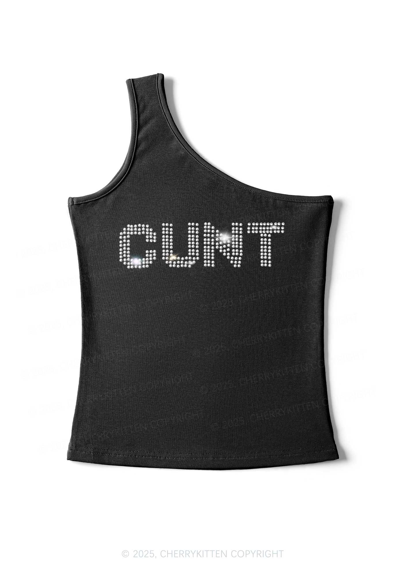 Rhinestone Cxxt Y2K One Shoulder Tank Top Cherrykitten