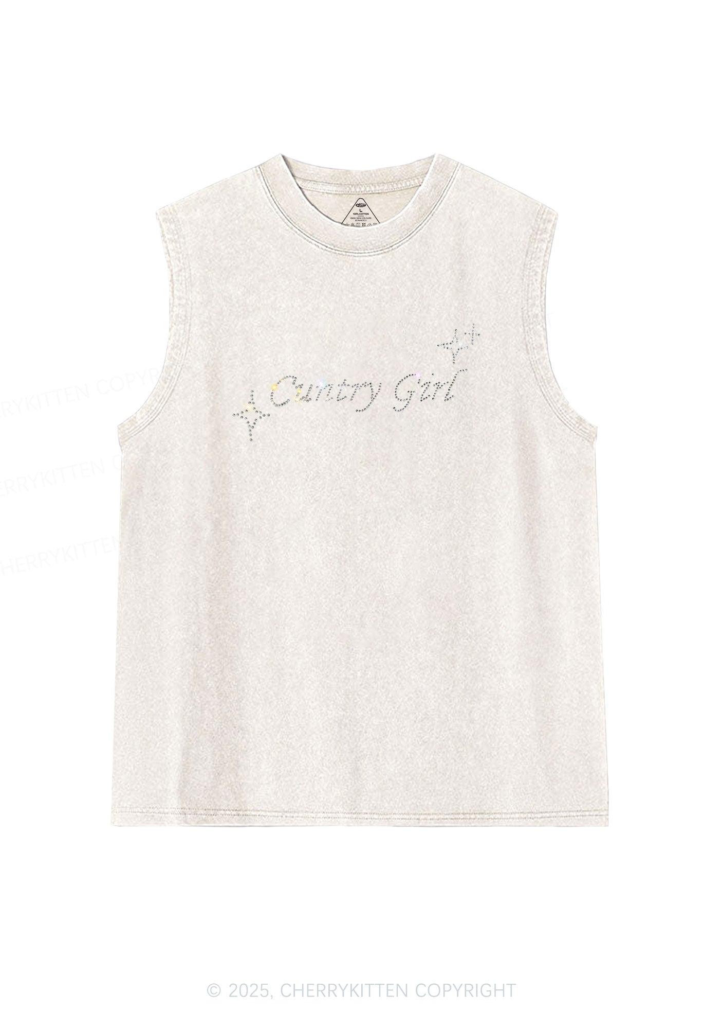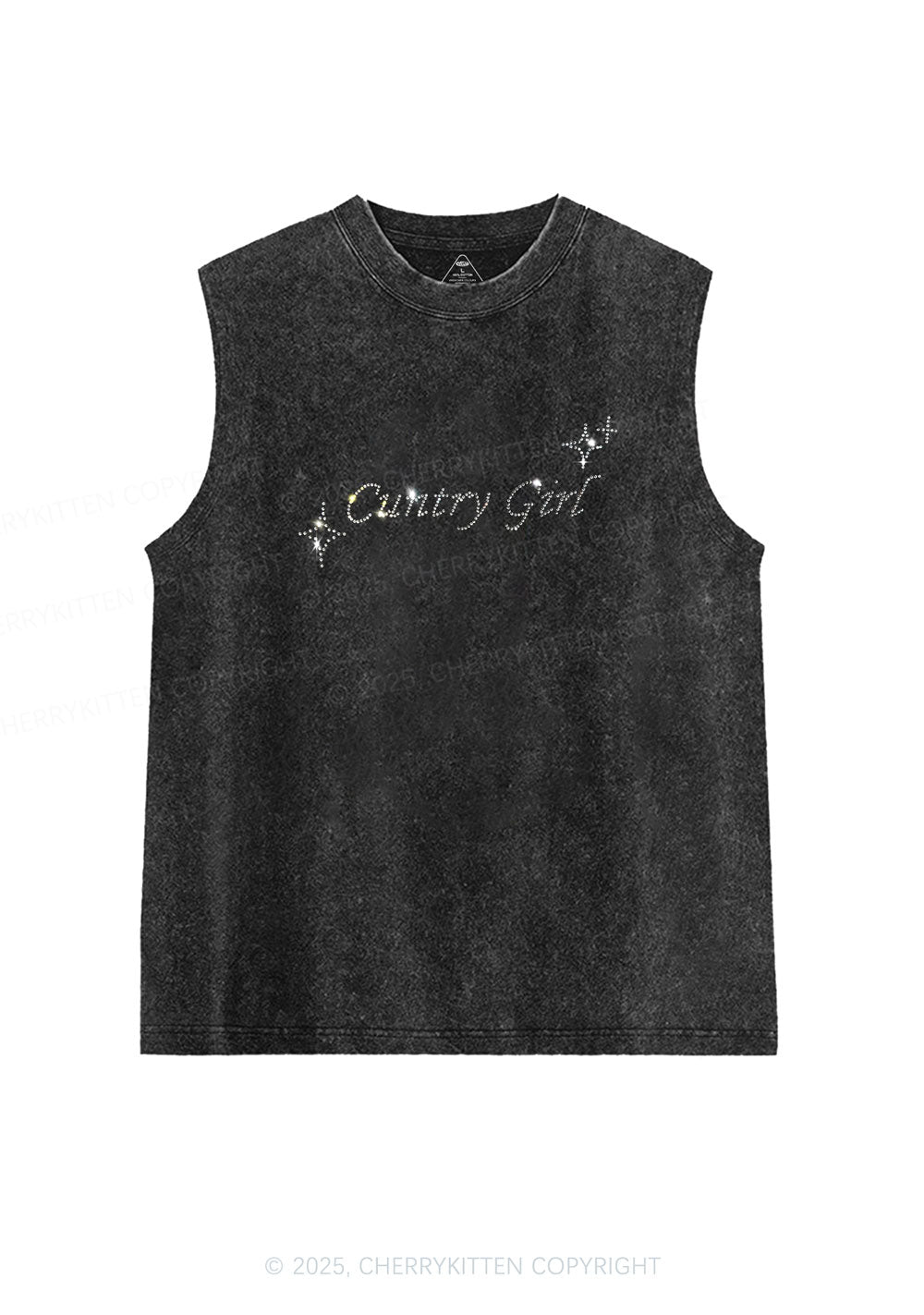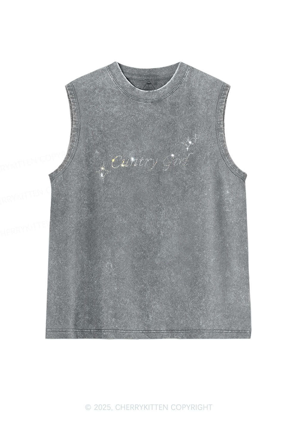 Rhinestone Cxxtry Girl Y2K Washed Muscle Tank Cherrykitten