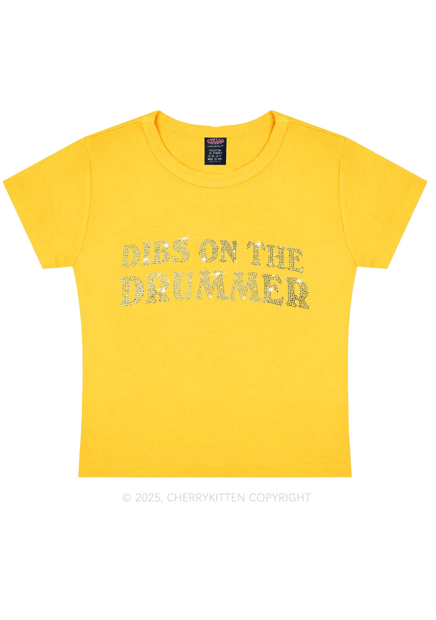 Rhinestone Dibs On The Drummer Y2K Baby Tee Cherrykitten