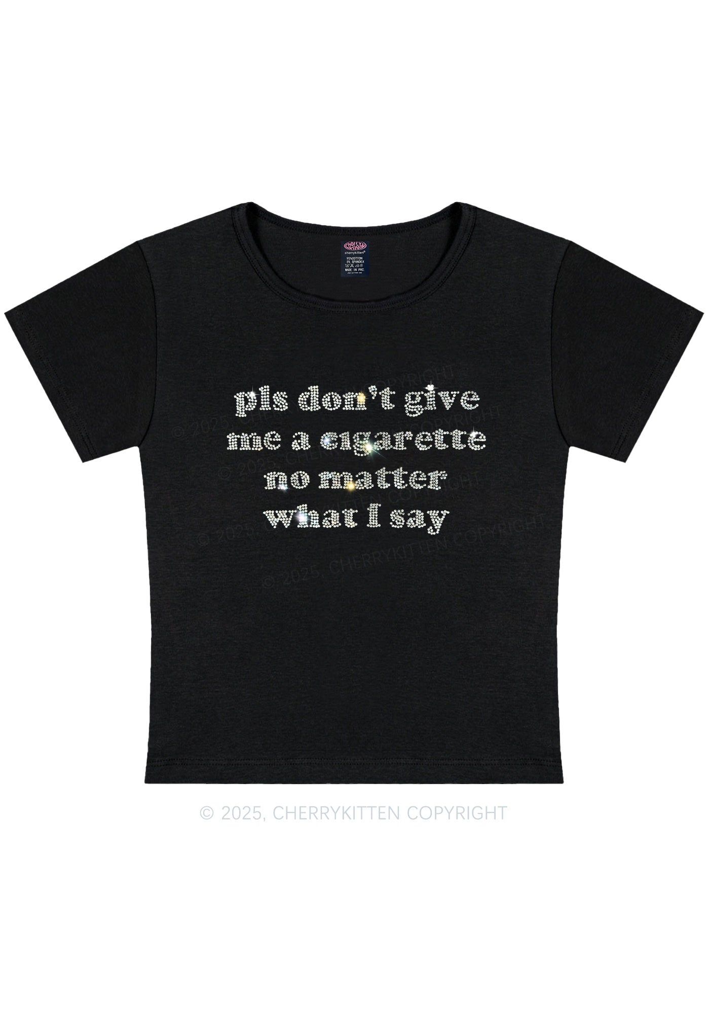 Rhinestone Dont Give Me Cigarette Y2K Baby Tee Cherrykitten