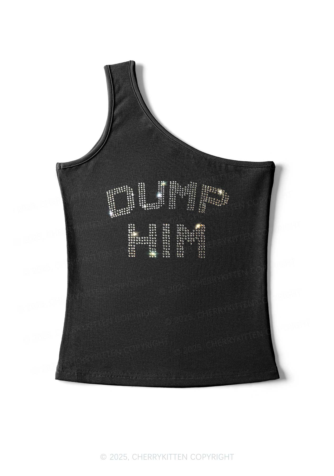 Rhinestone Dump Him Y2K One Shoulder Tank Top Cherrykitten