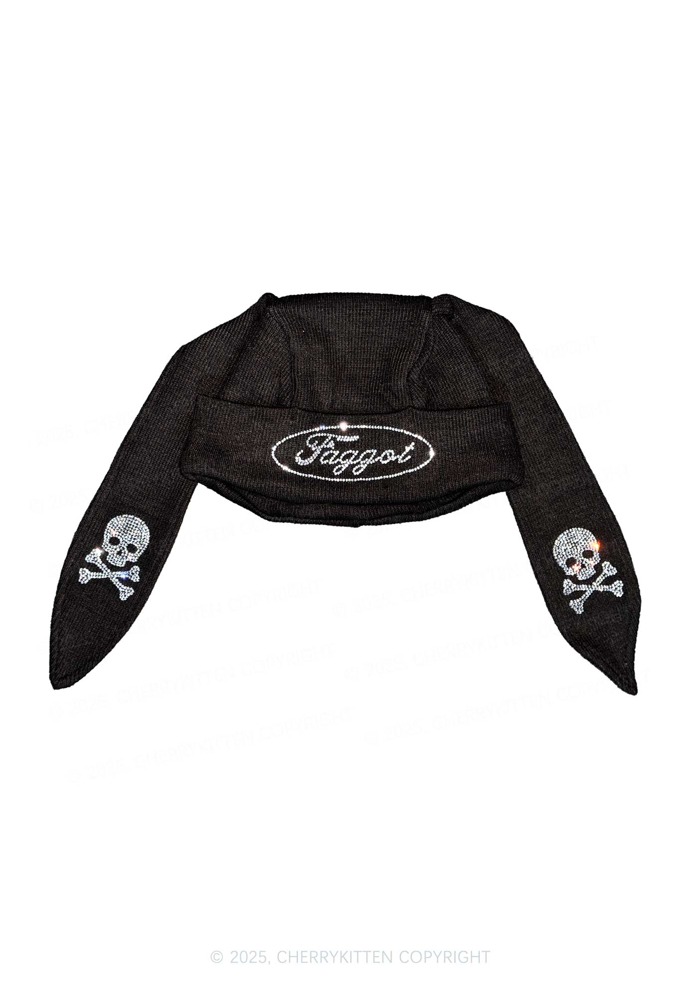 Rhinestone Faggot Pride Y2K Bunny Ear Knitted Hat Cherrykitten