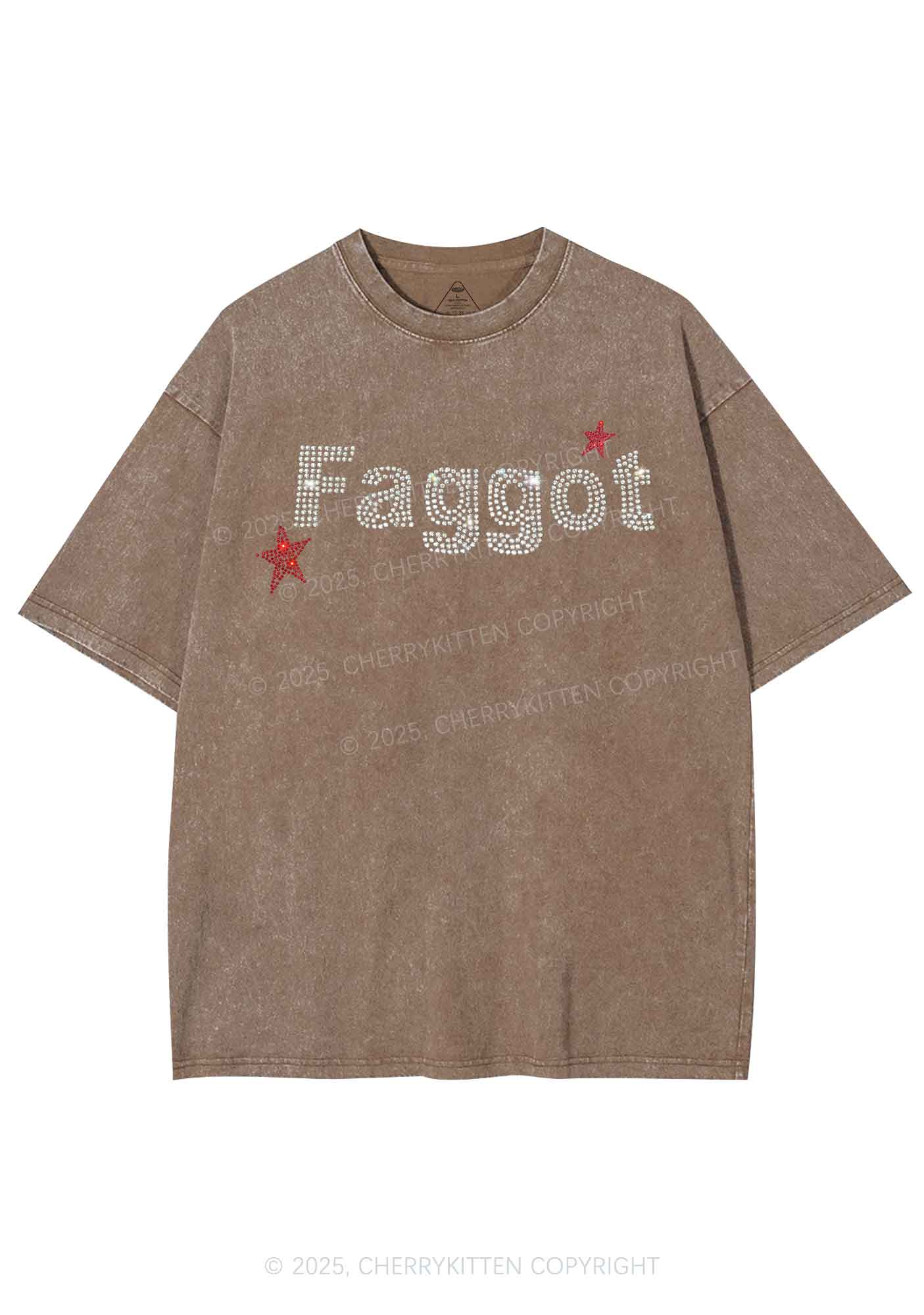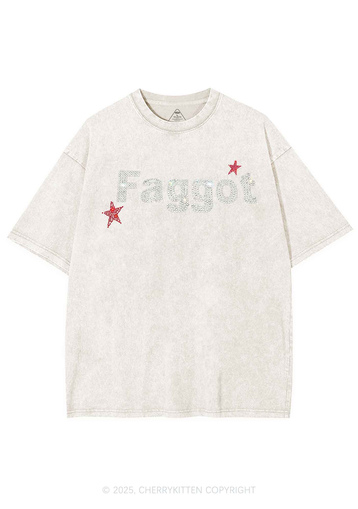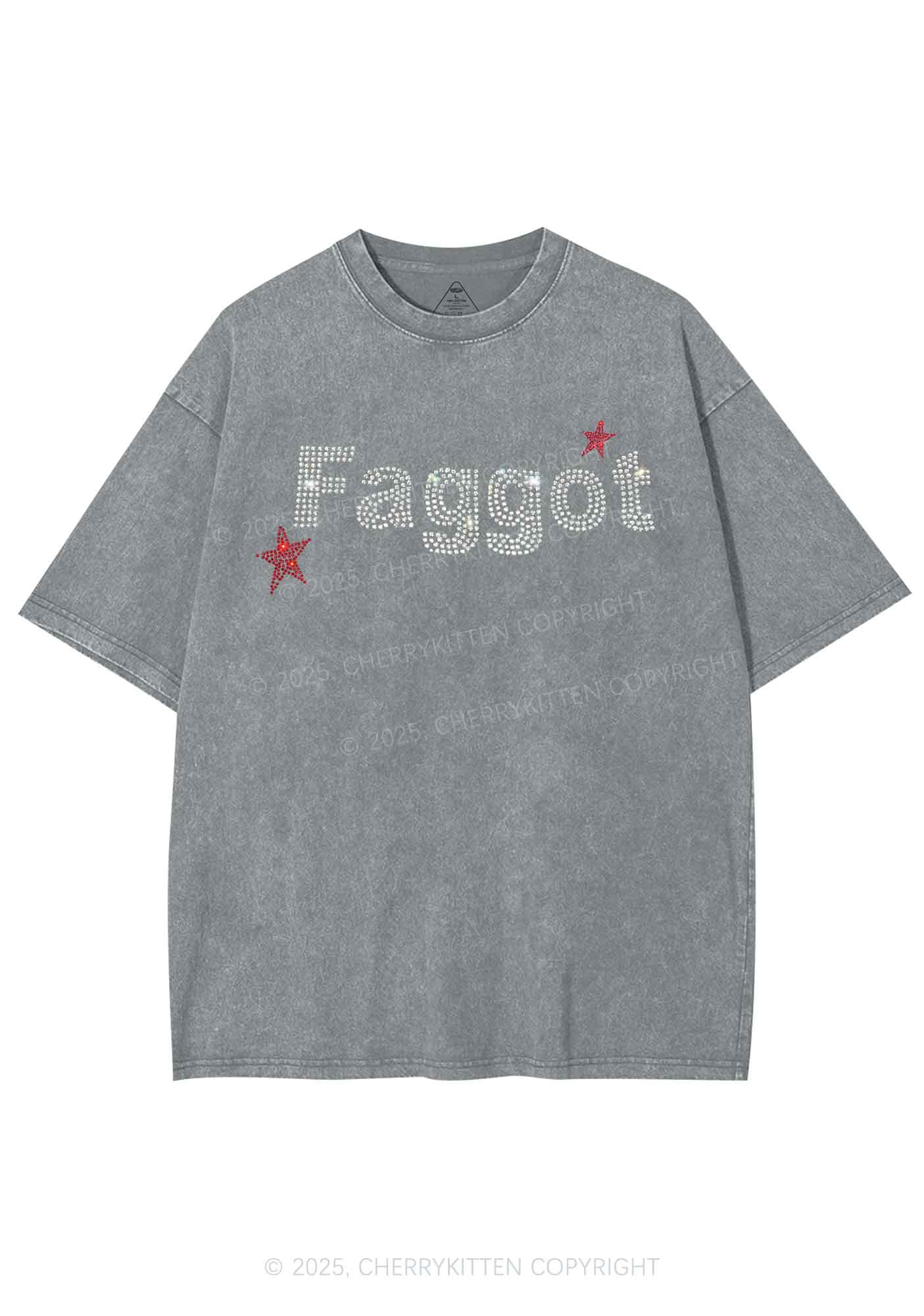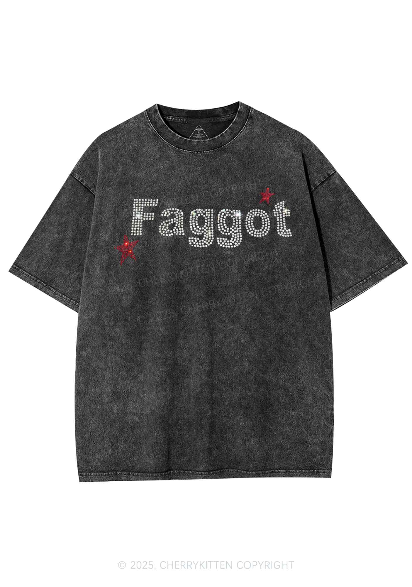 Rhinestone Faggot Pride Y2K Shirts Washed Tee Cherrykitten