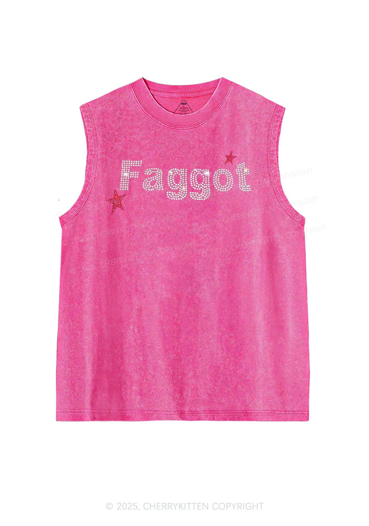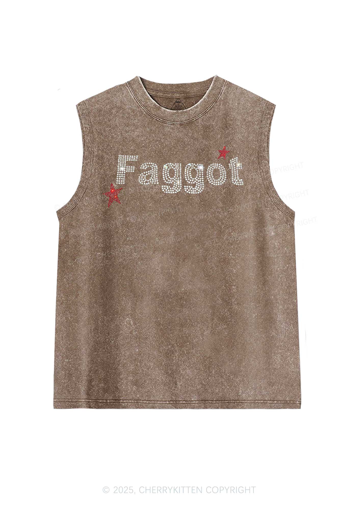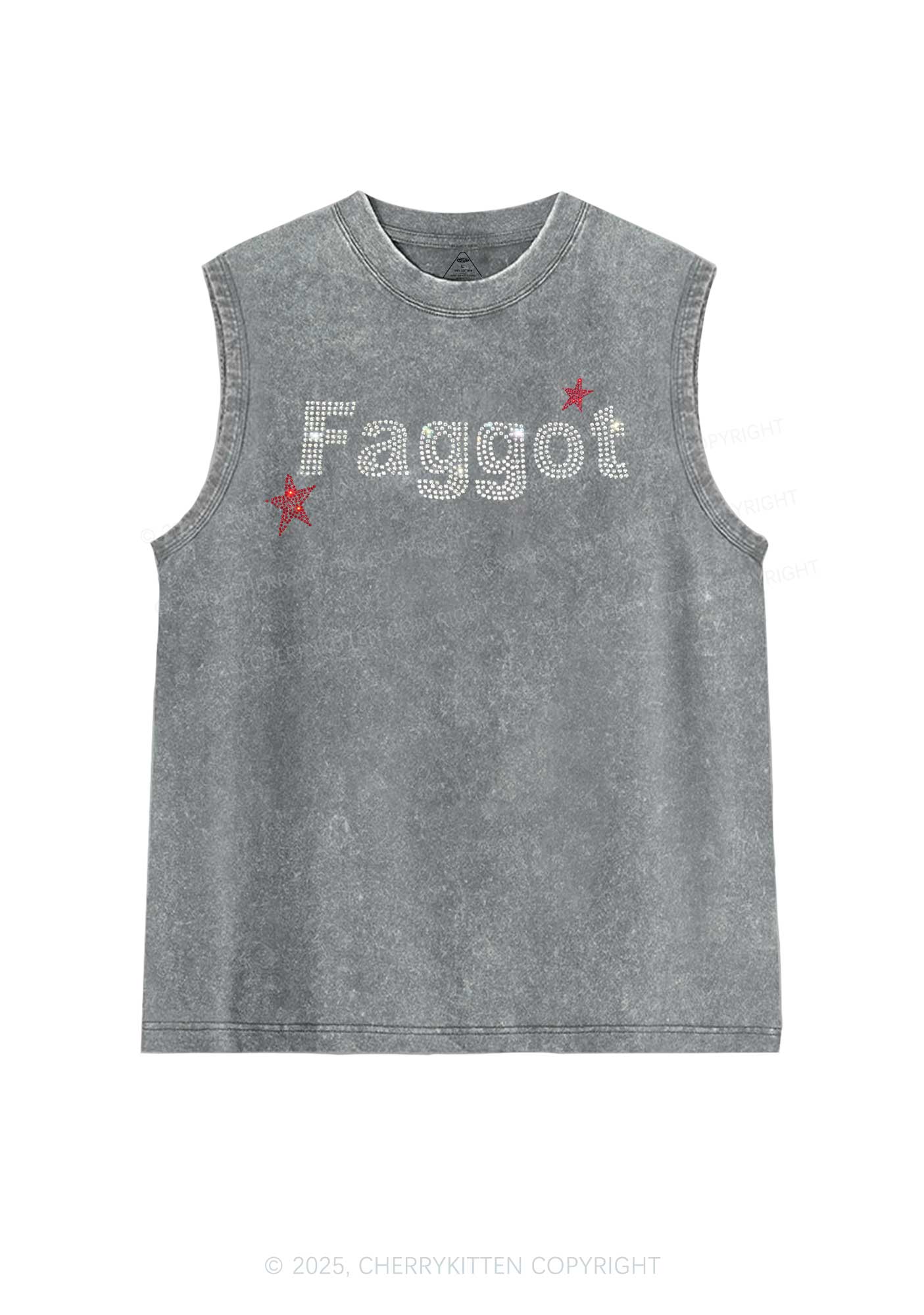 Rhinestone Faggot Pride Y2K Washed Muscle Tank Cherrykitten