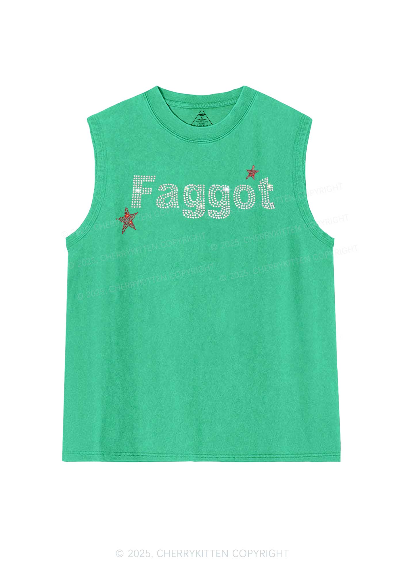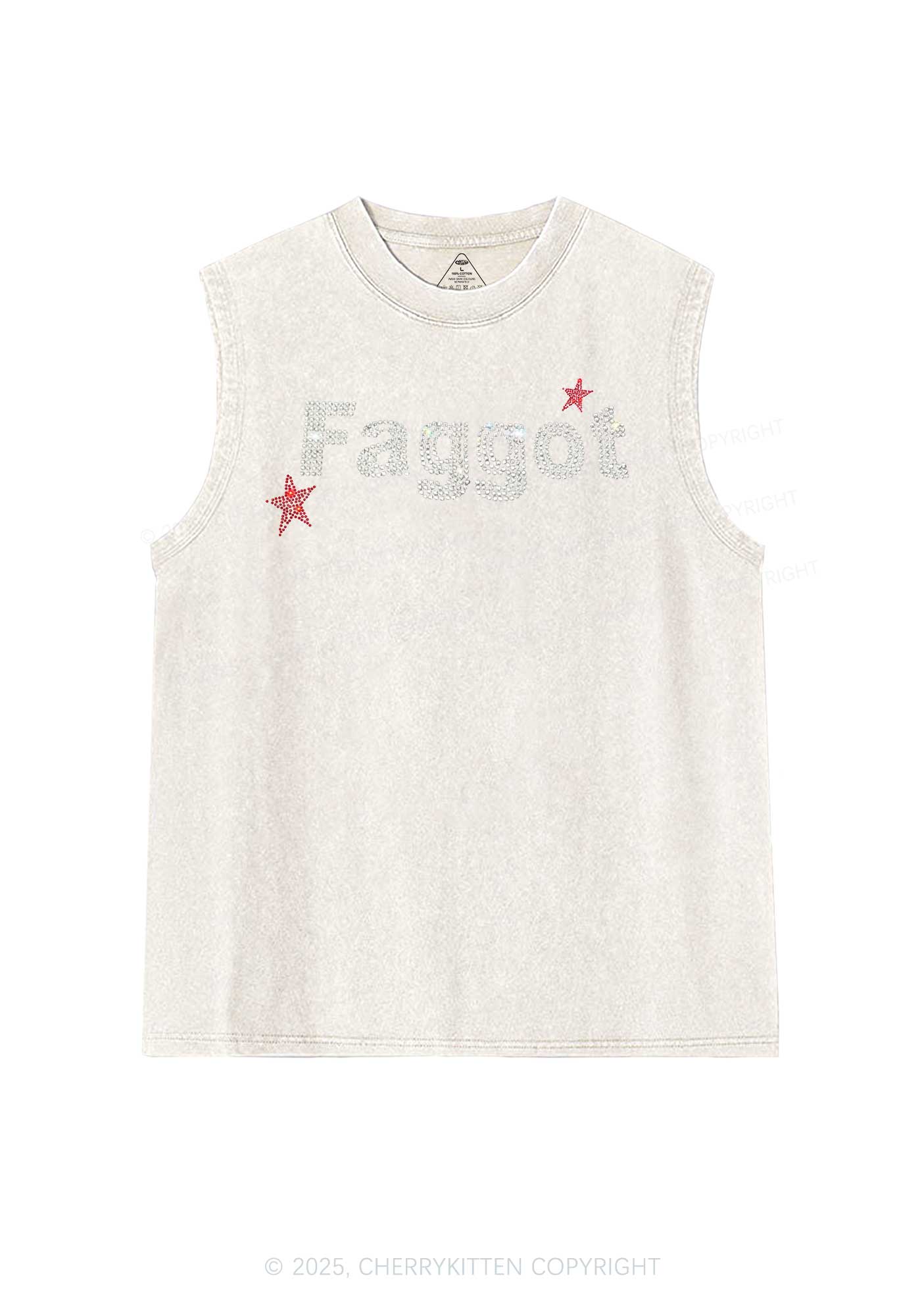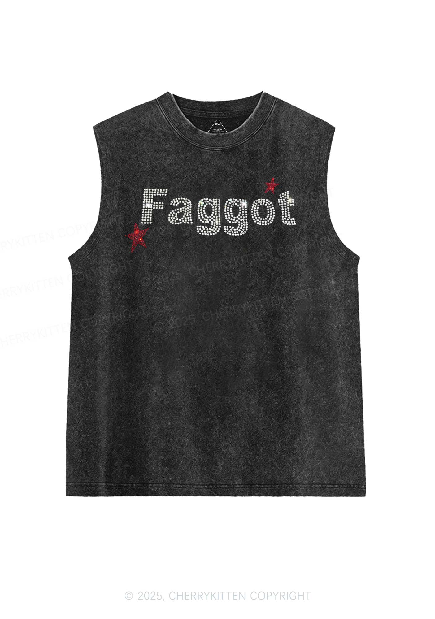 Rhinestone Faggot Pride Y2K Washed Muscle Tank Cherrykitten