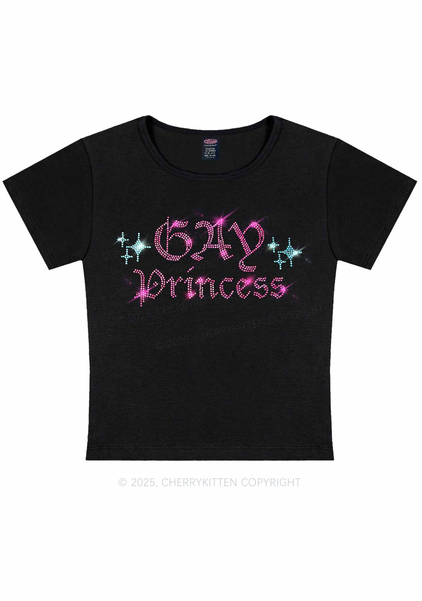 Rhinestone Gay Princess Y2K Baby Tee Cherrykitten