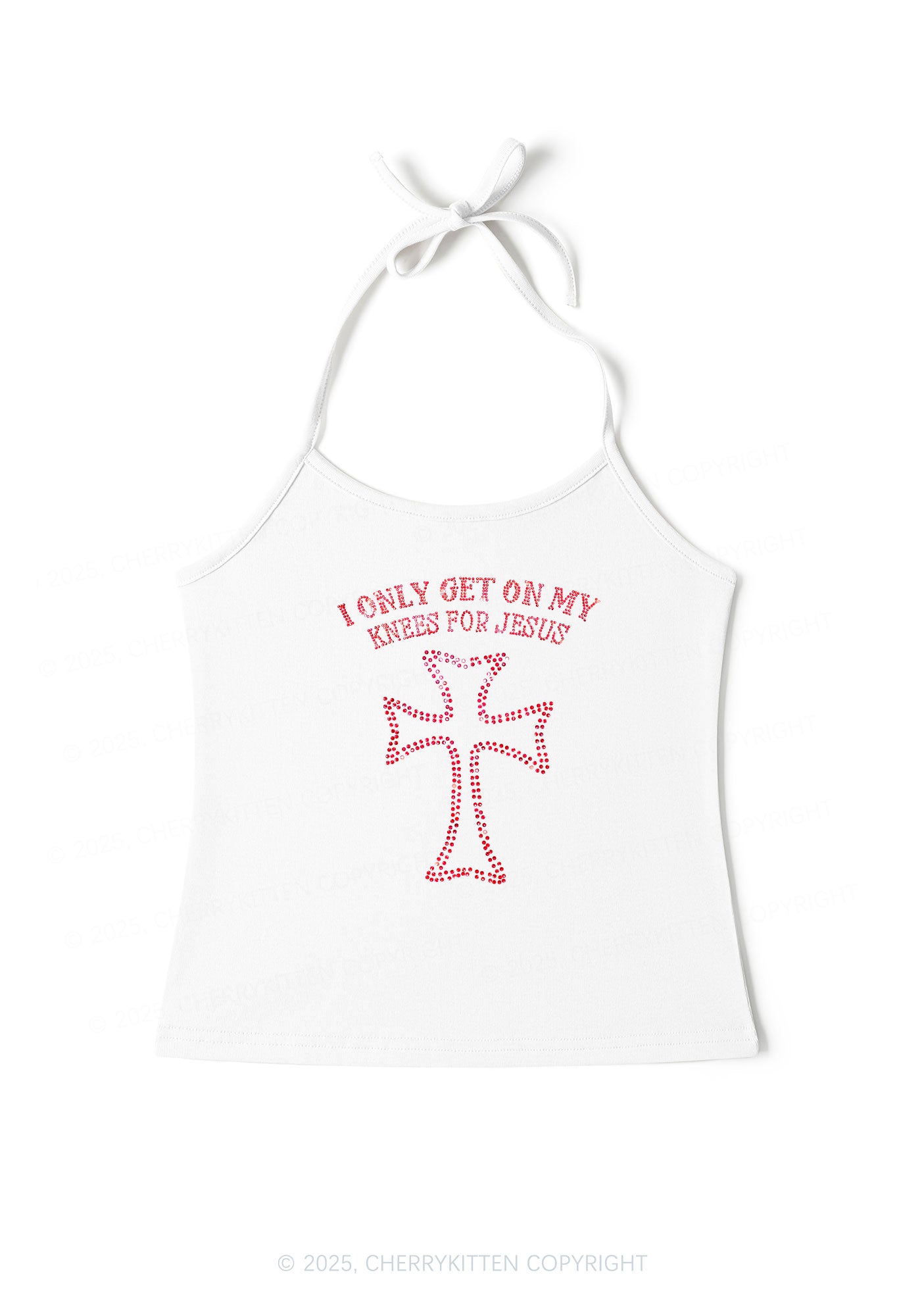 Rhinestone Get On Knees For Jesus Y2K Halter Neck Cami Cherrykitten