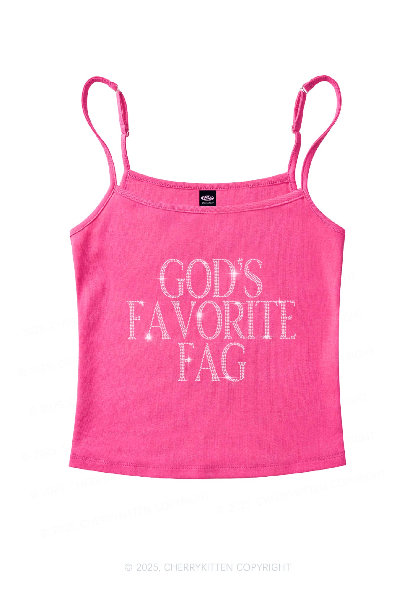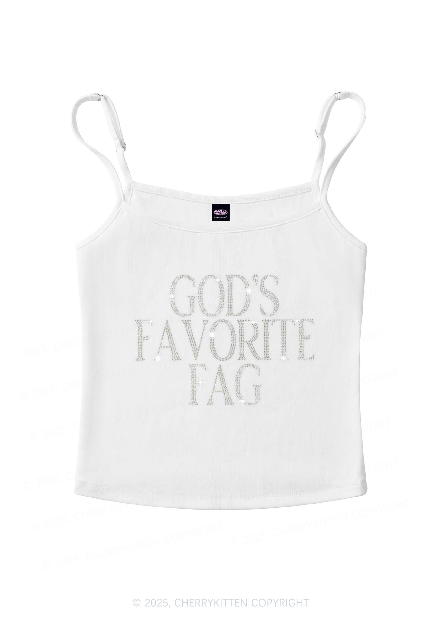 Rhinestone Gods Favorite Fag Pride Y2K Spaghetti Strap Cami Cherrykitten
