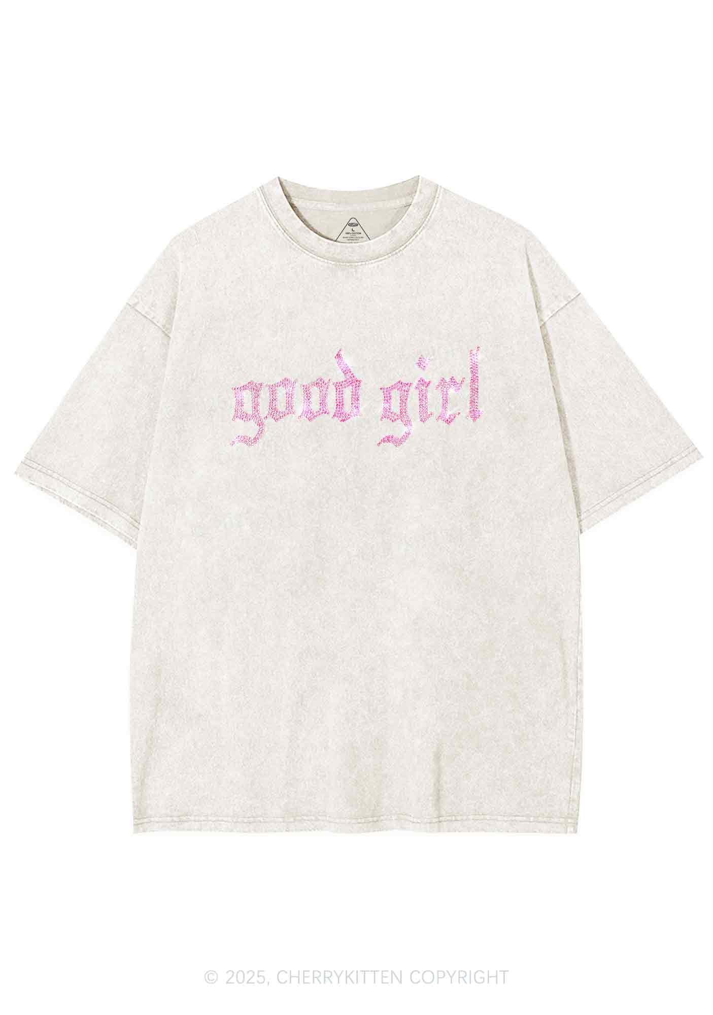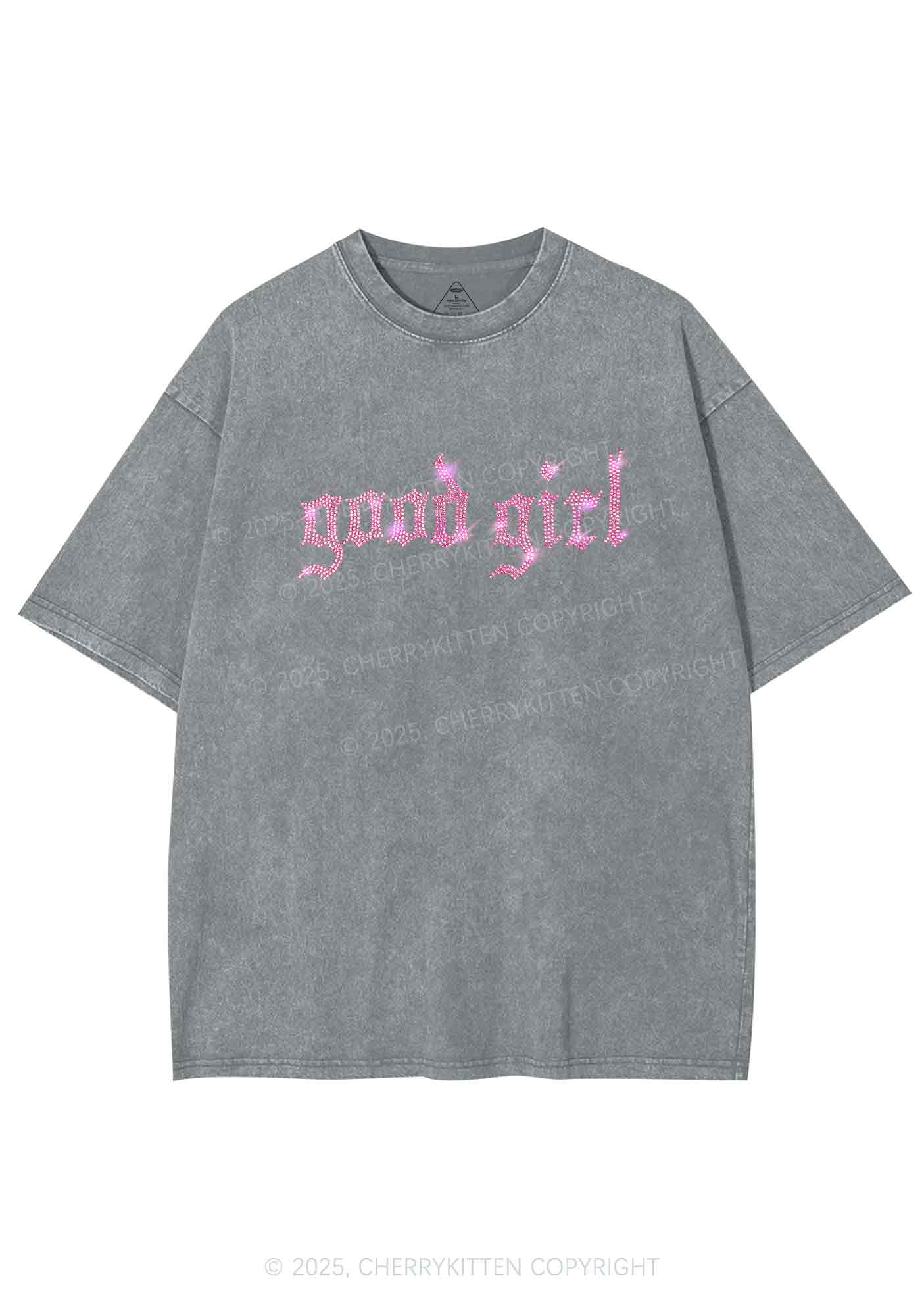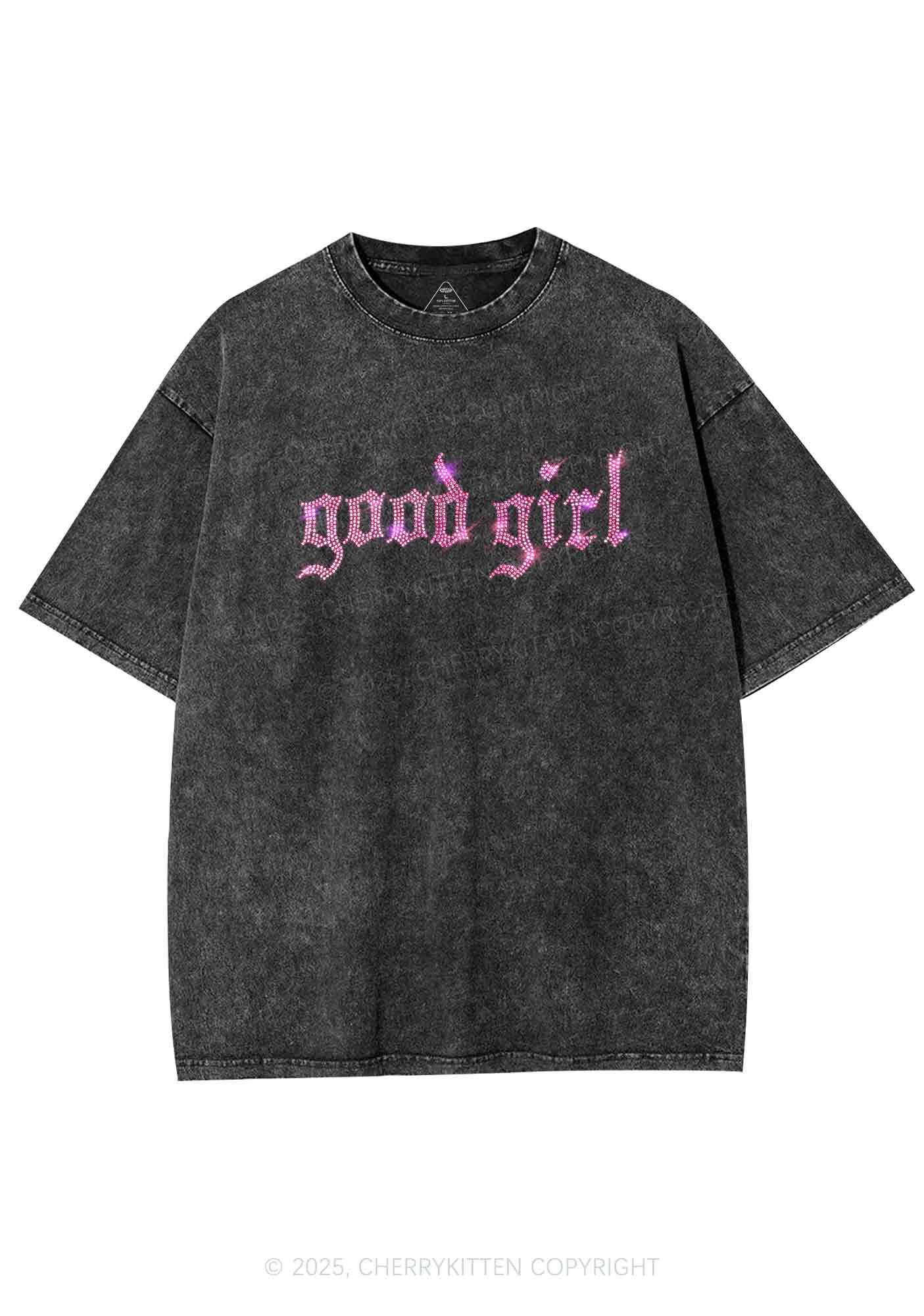 Rhinestone Good Girl Y2K Shirts Washed Tee Cherrykitten