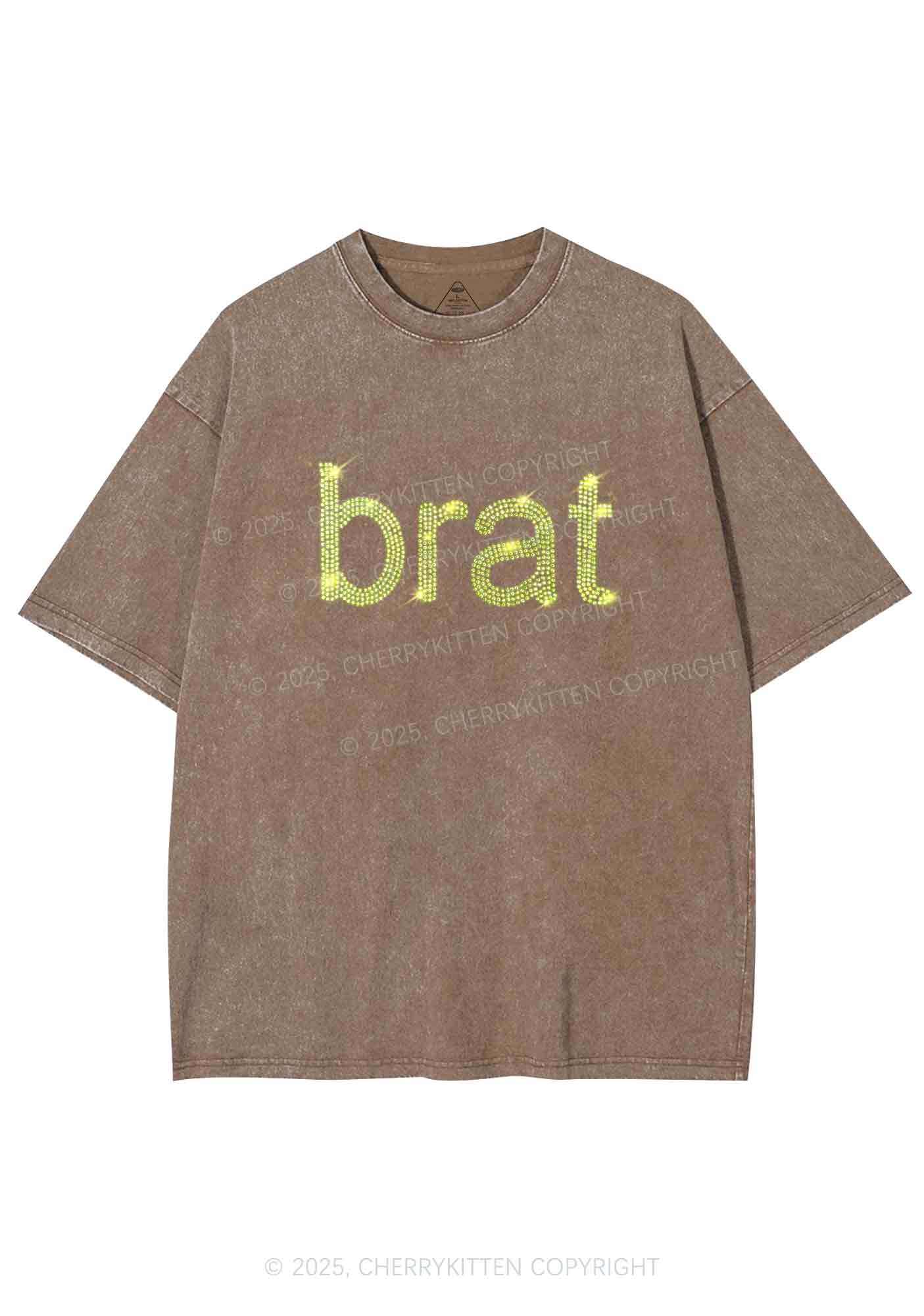 Rhinestone Green Brat Y2K Shirts Washed Tee Cherrykitten