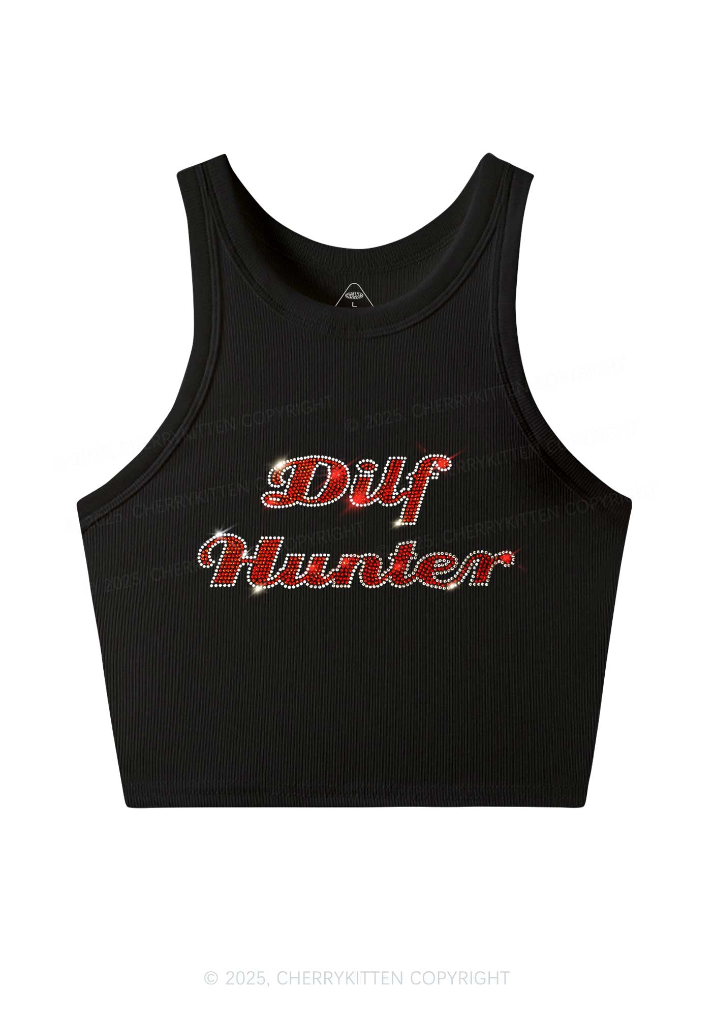 Rhinestone Green Hunter Y2K Crop Tank Top Cherrykitten