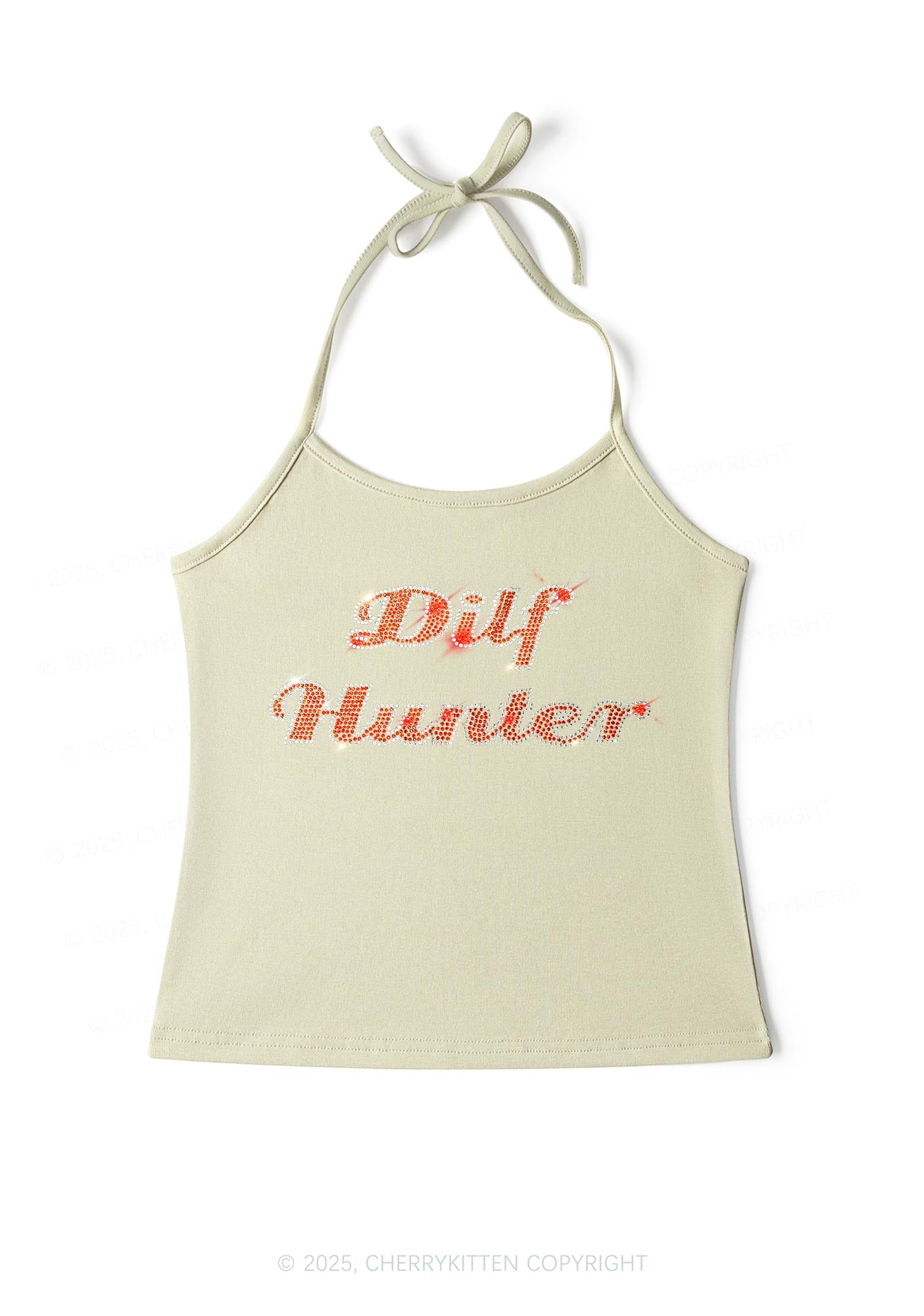 Rhinestone Green Hunter Y2K Halter Neck Cami Cherrykitten