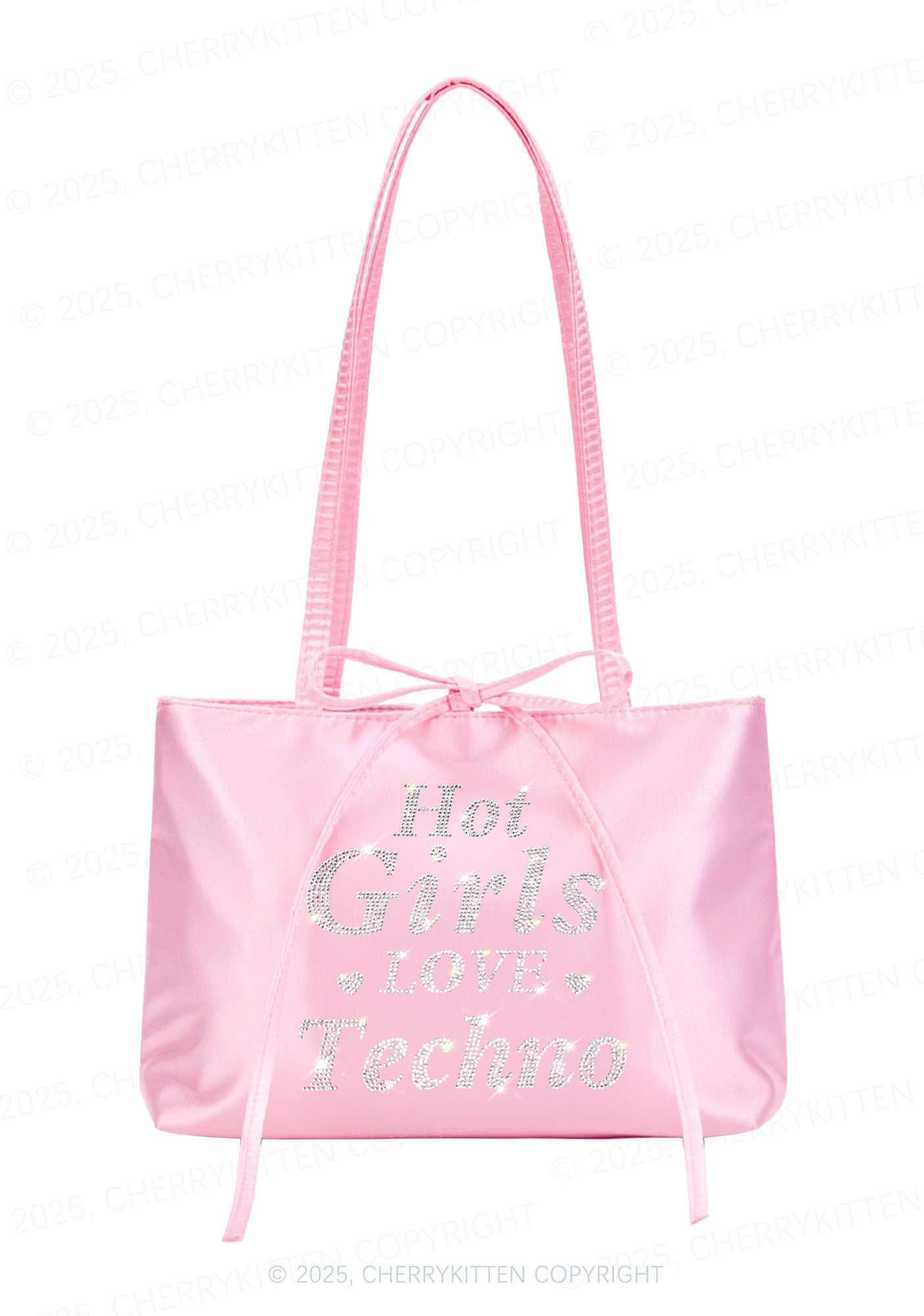 Rhinestone Hot Girls Love Techno Y2K Satin Bags Cherrykitten