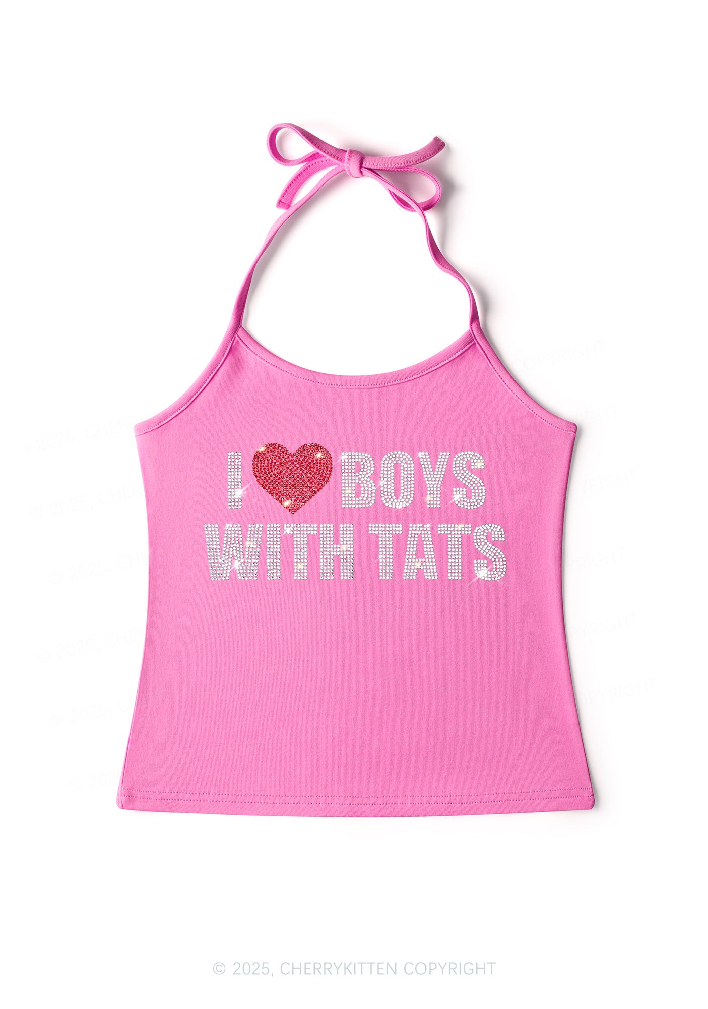 Rhinestone I Love Boys With Tats Y2K Halter Neck Cami Cherrykitten