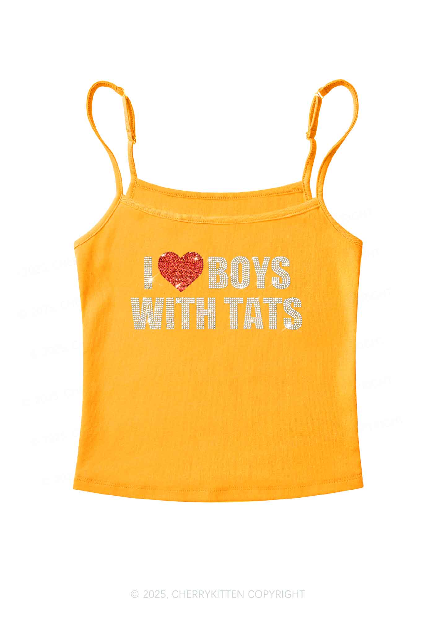 Rhinestone I Love Boys With Tats Y2K Spaghetti Strap Cami Cherrykitten
