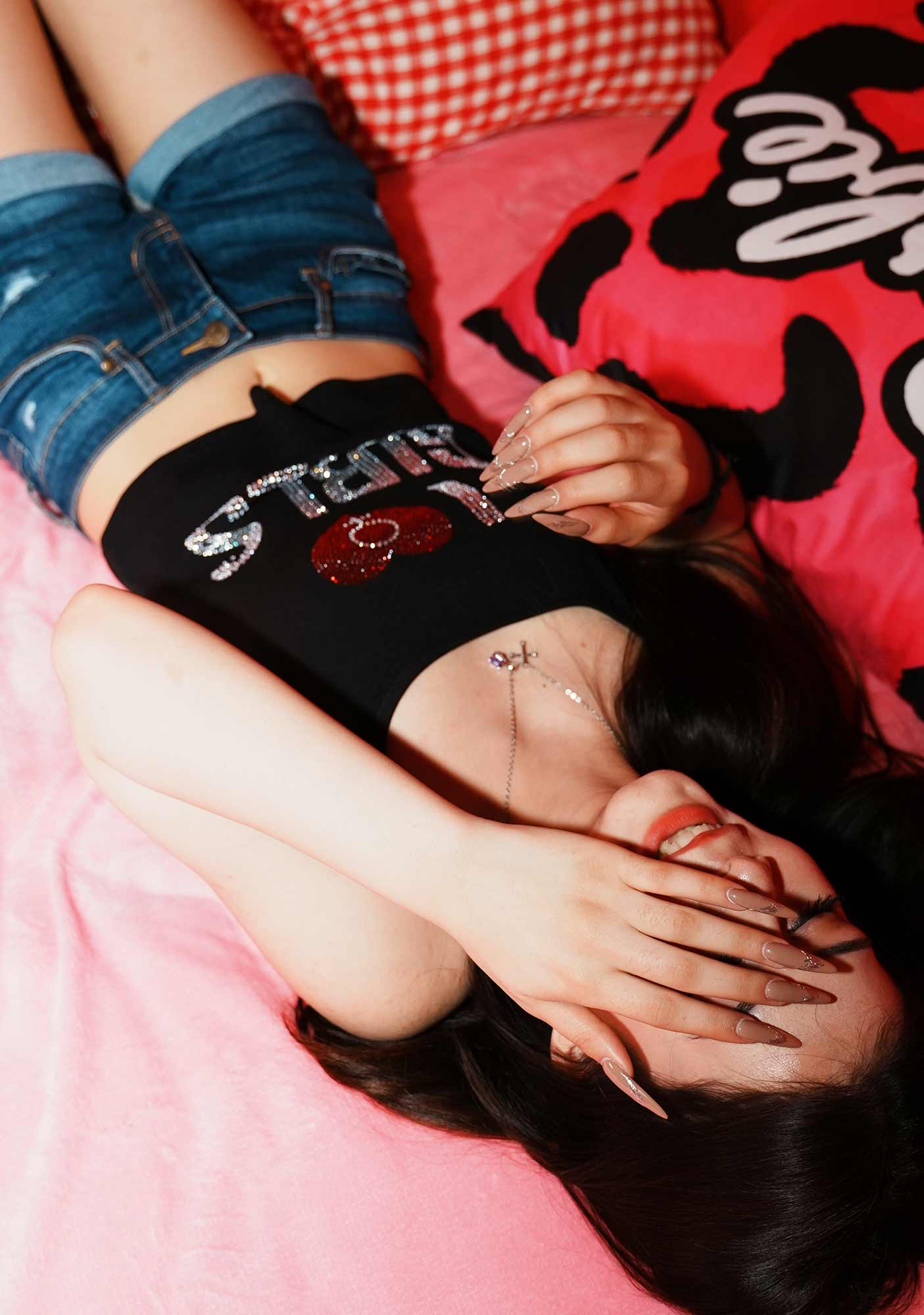 Rhinestone I Love Girls Pride Y2K Spaghetti Strap Cami Cherrykitten