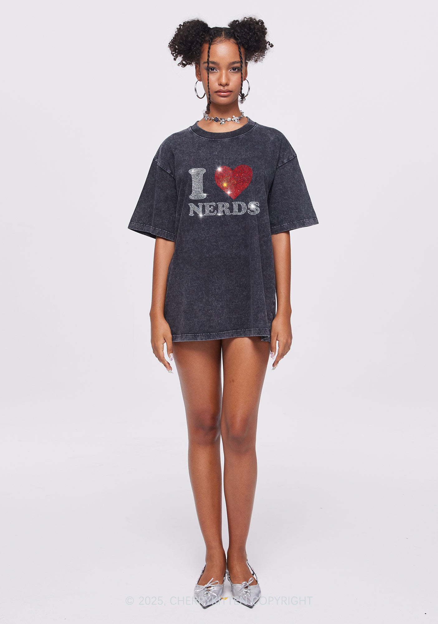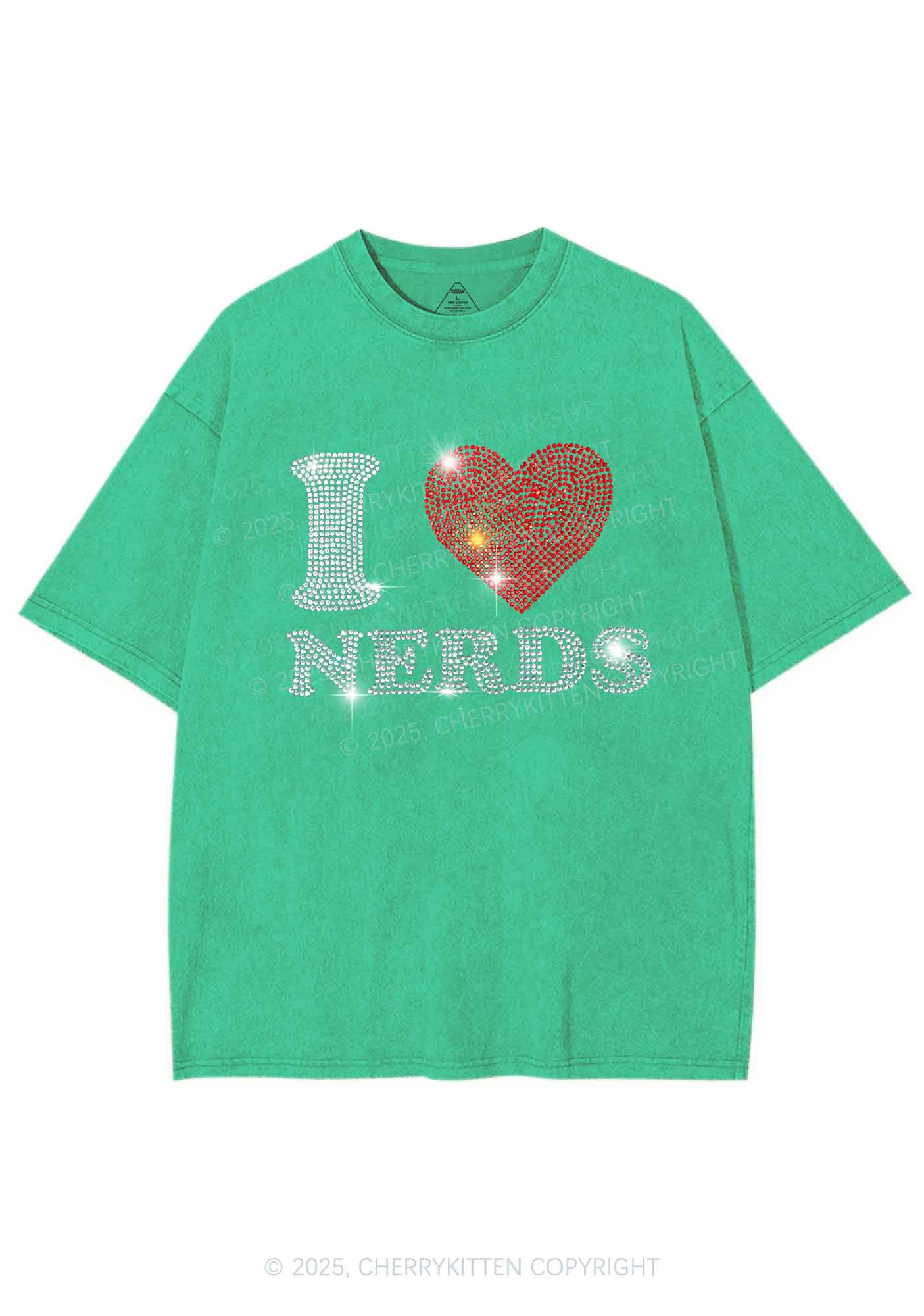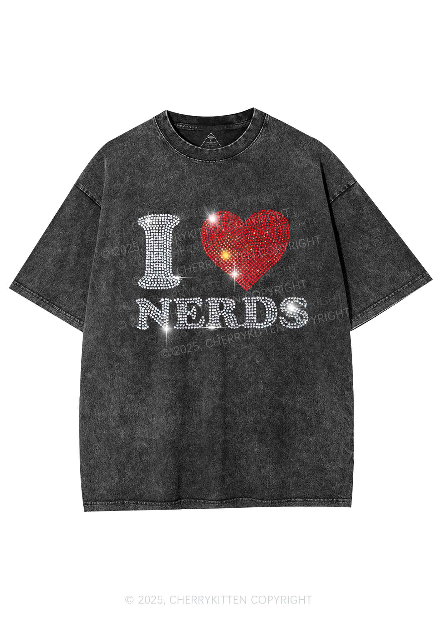Rhinestone I Love Nerds Y2K Shirts Washed Tee Cherrykitten