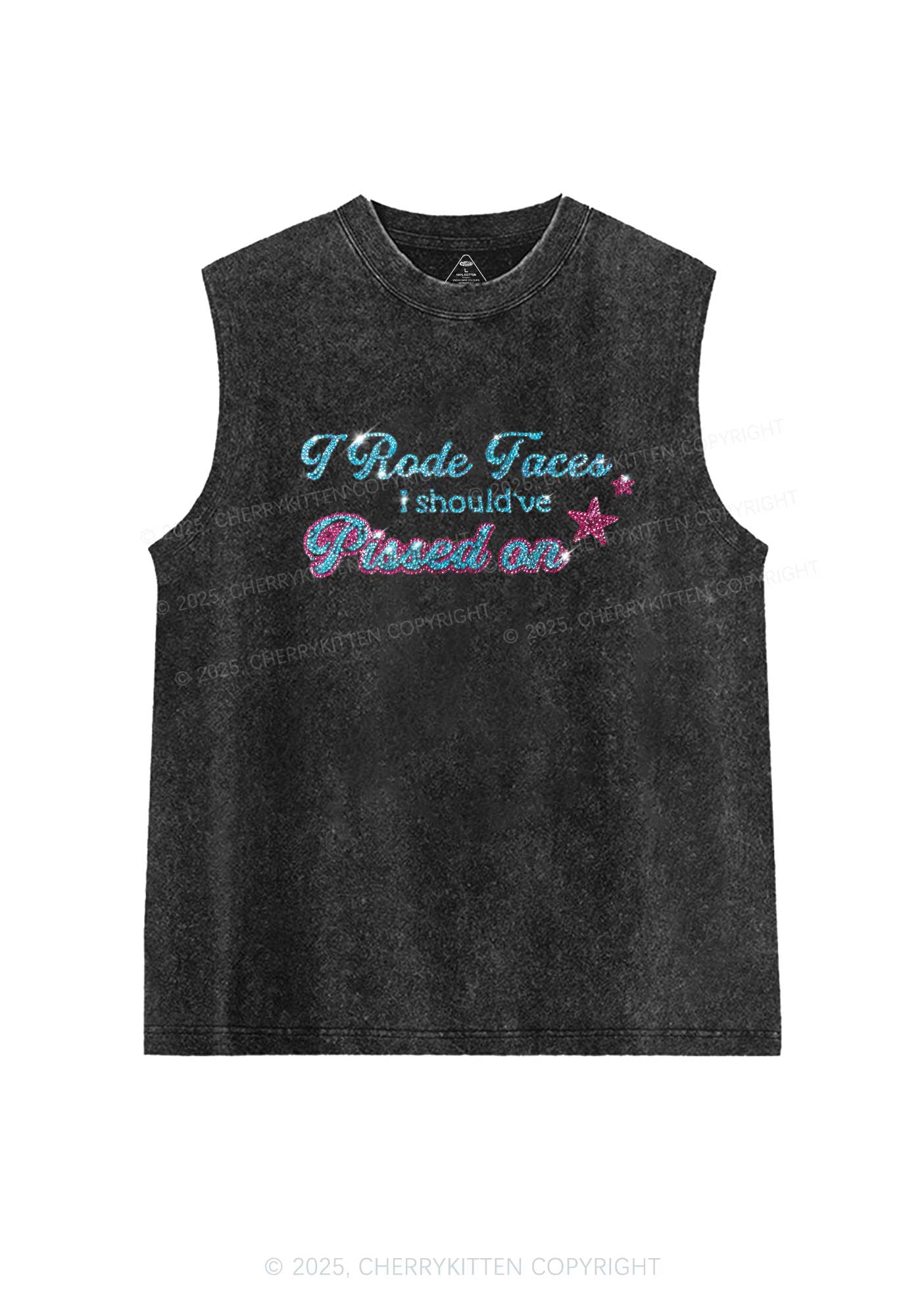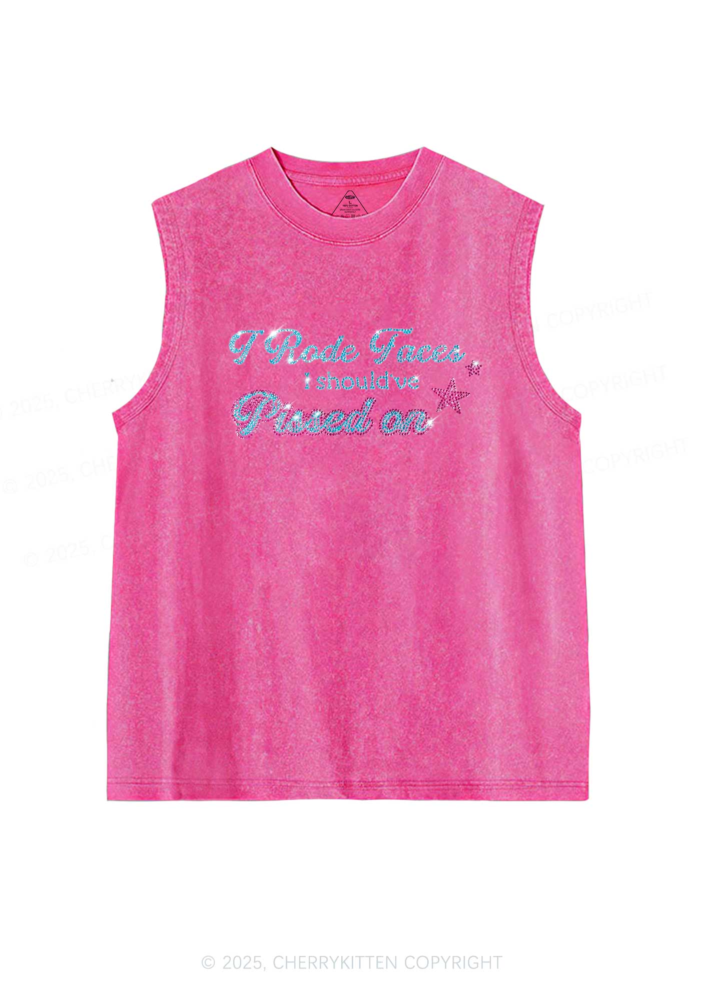 Rhinestone I Rode Faces Y2K Washed Muscle Tank Cherrykitten