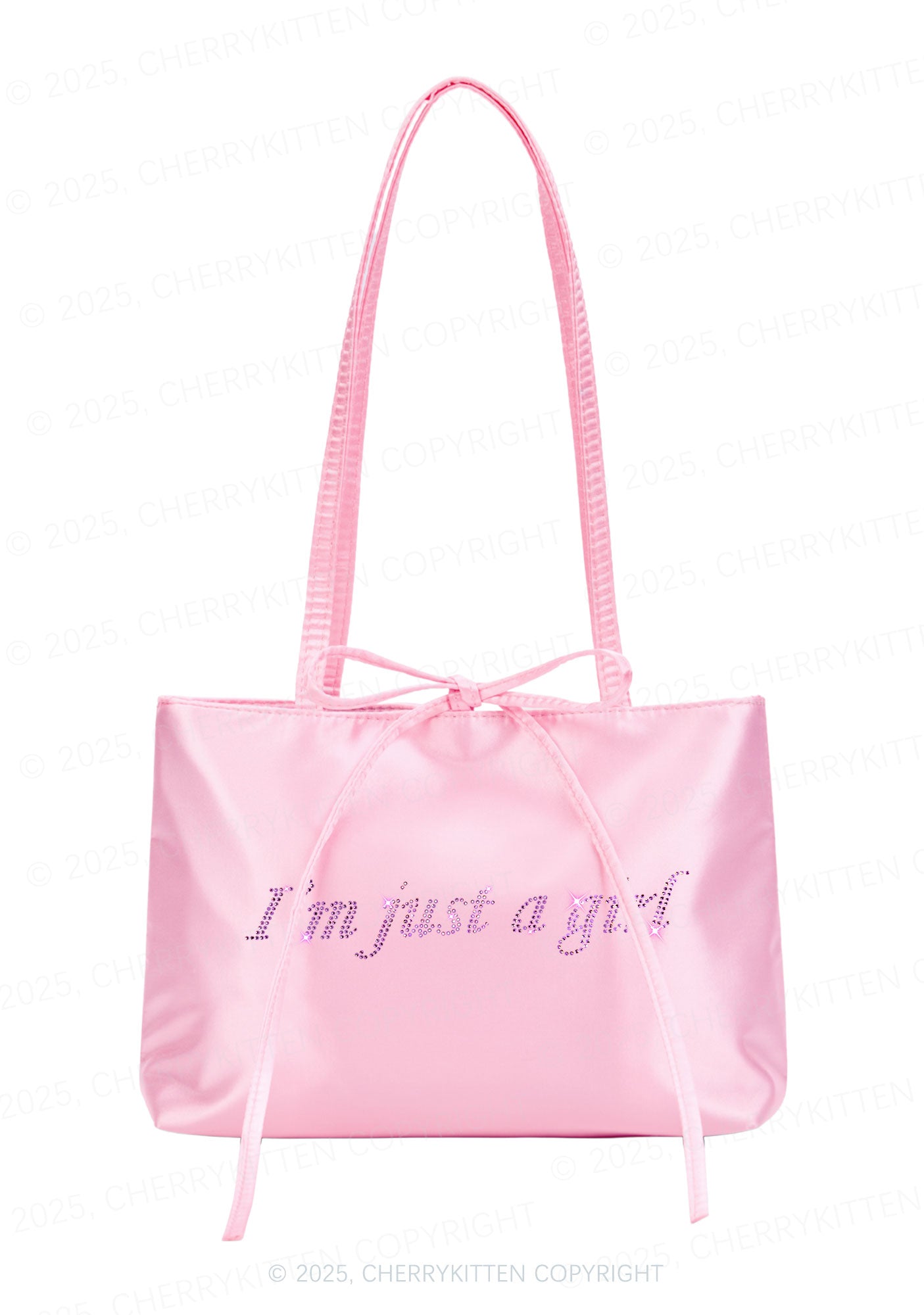 Rhinestone Just A Girl Y2K Satin Bags Cherrykitten