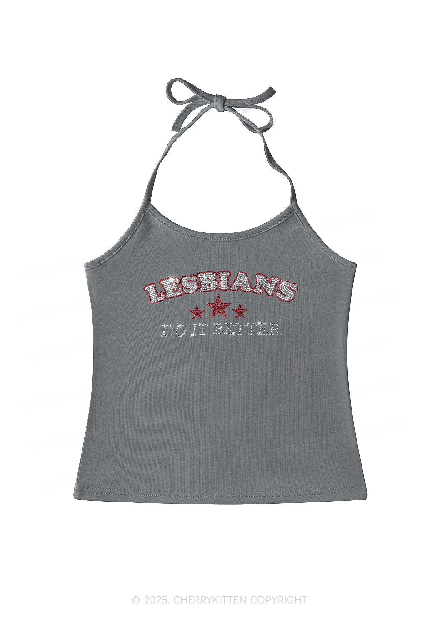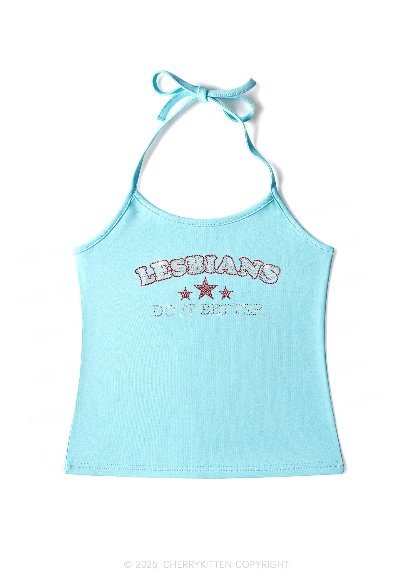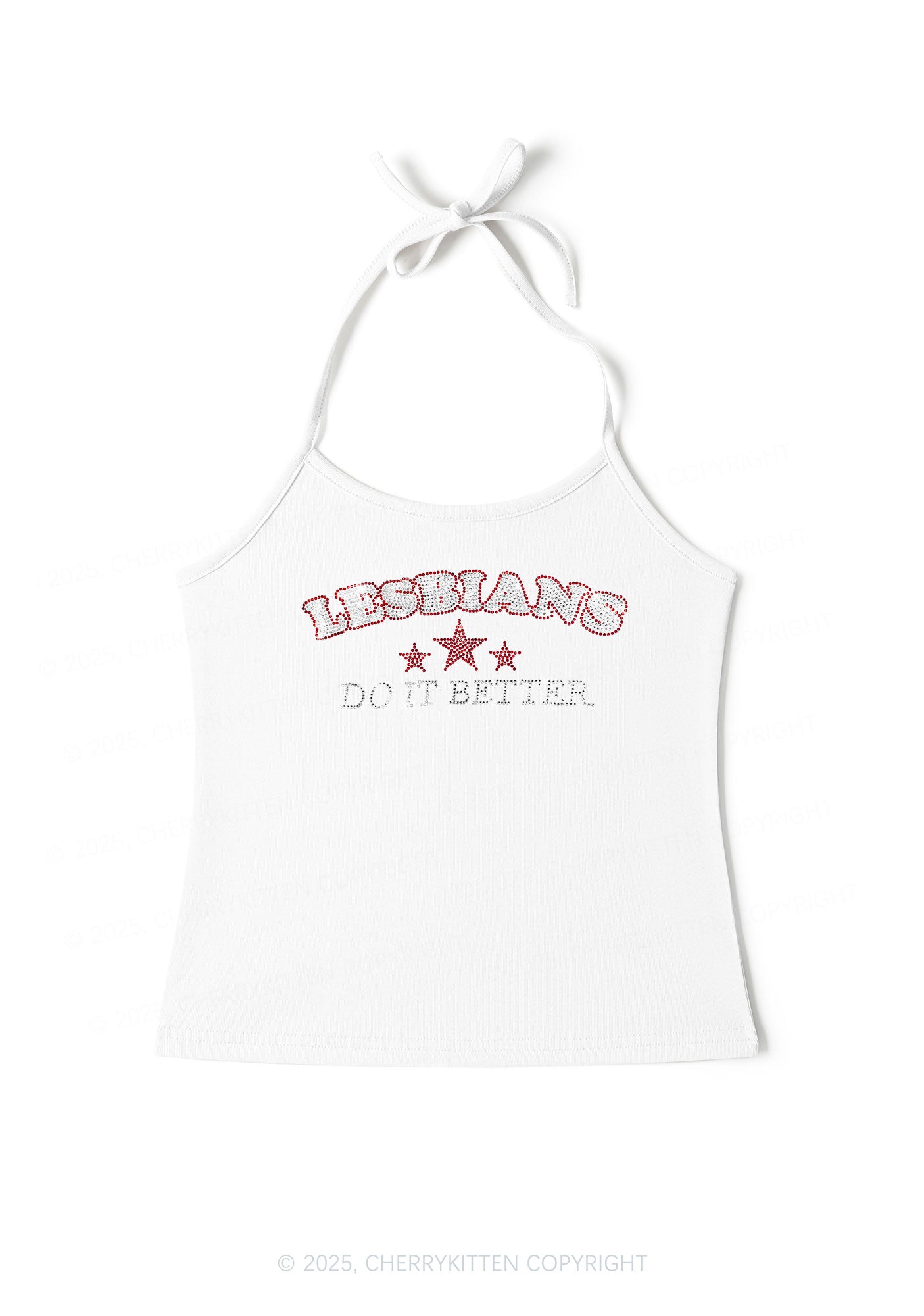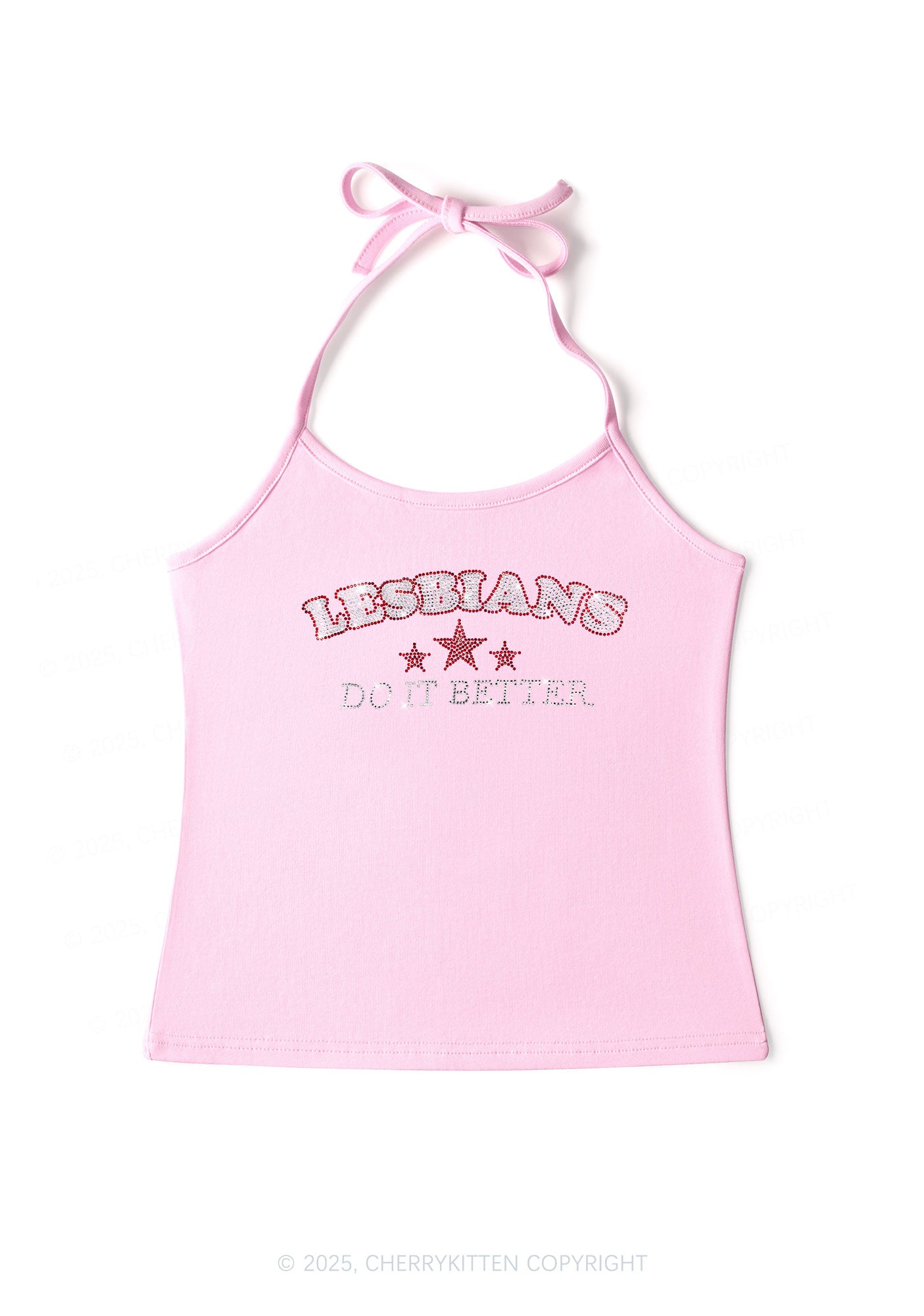 Rhinestone Lesbians Do It Better Pride Y2K Halter Neck Cami Cherrykitten
