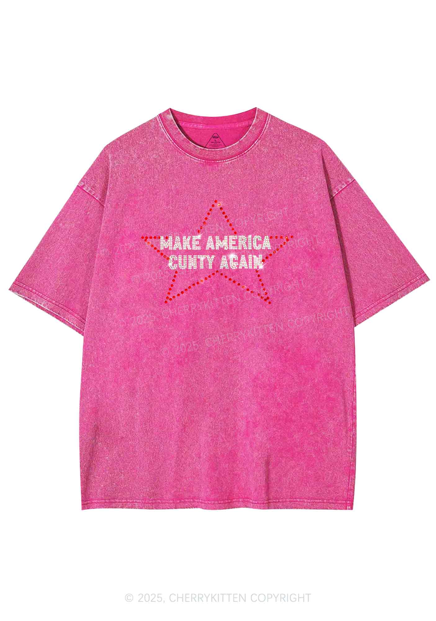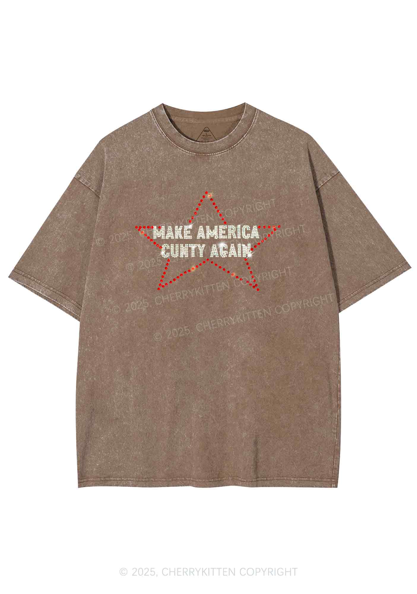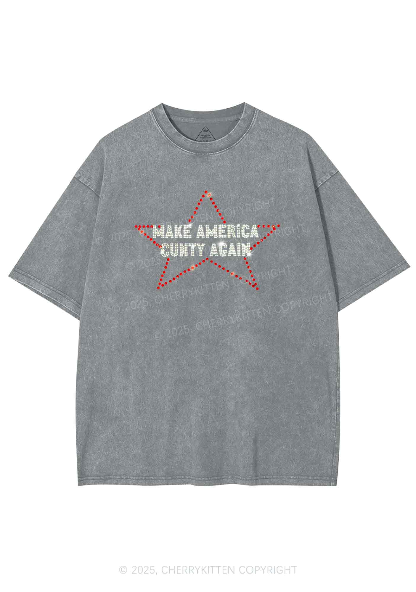 Rhinestone Make America Cxxty Again Y2K Shirts Washed Tee Cherrykitten
