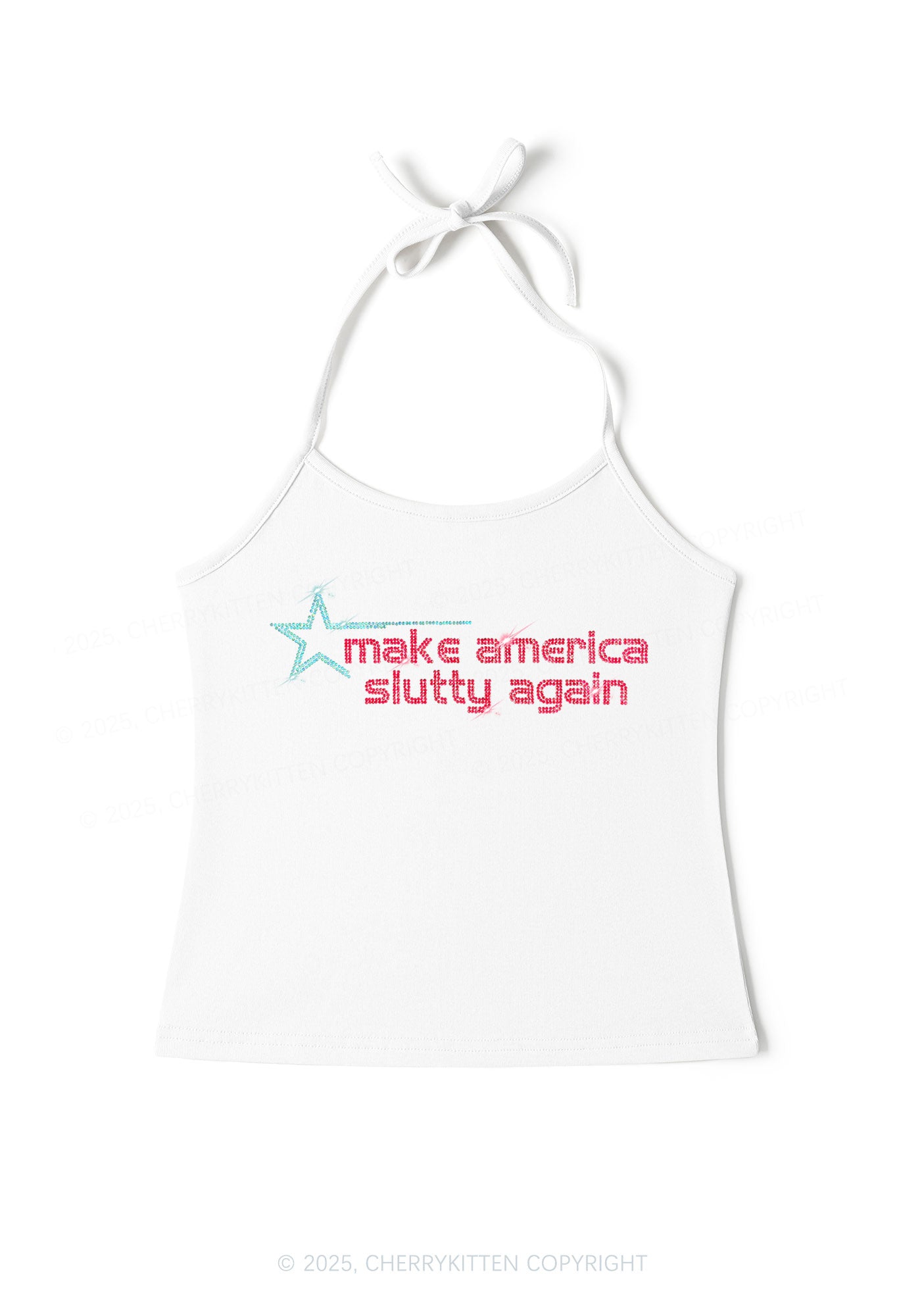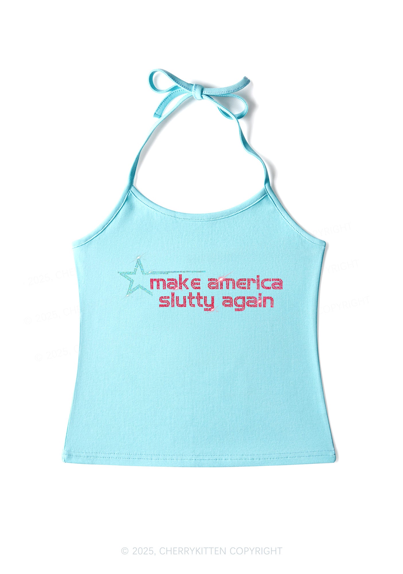 Rhinestone Make America Slxtty Again Y2K Halter Neck Cami Cherrykitten