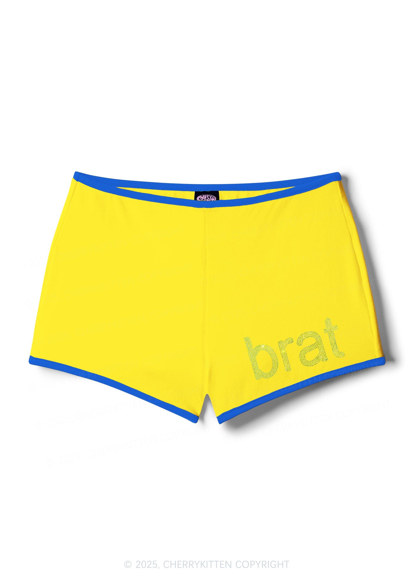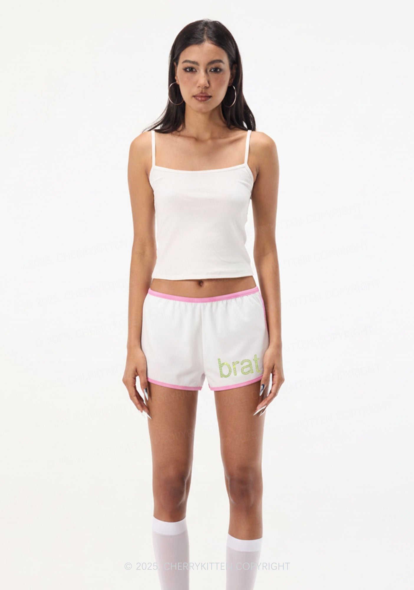 Rhinestone Mini Green Brat Y2K Booty Shorts Cherrykitten