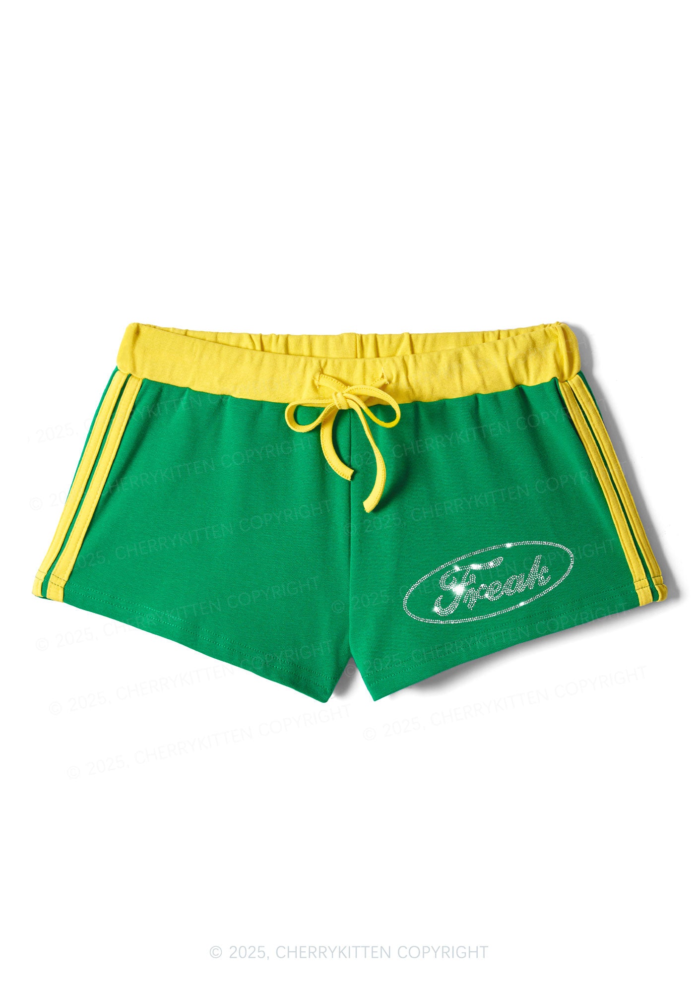 Rhinestone Mini Oval Freak Y2K Drawstring Mini Shorts Cherrykitten