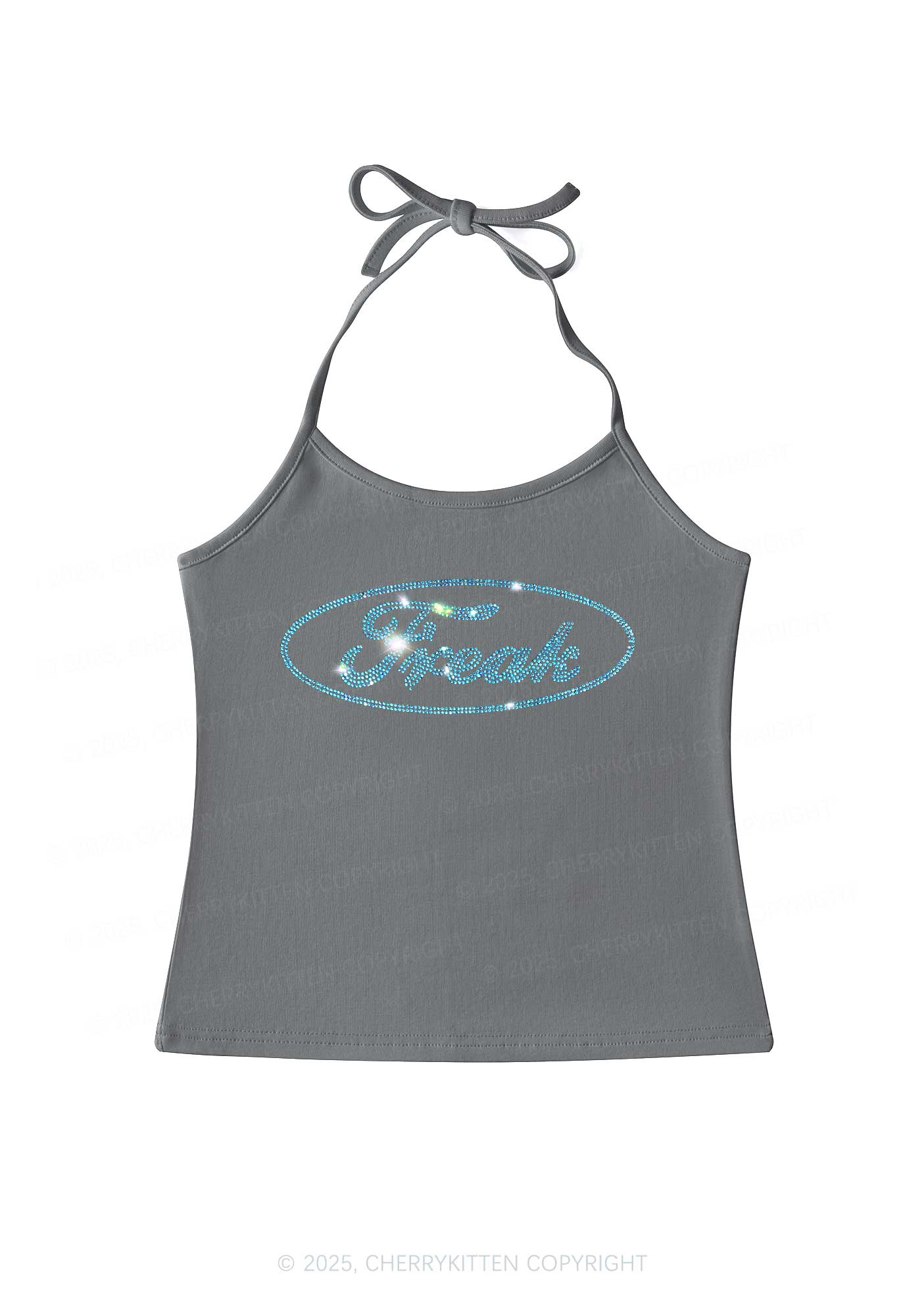 Rhinestone Oval Freak Y2K Halter Neck Cami Cherrykitten