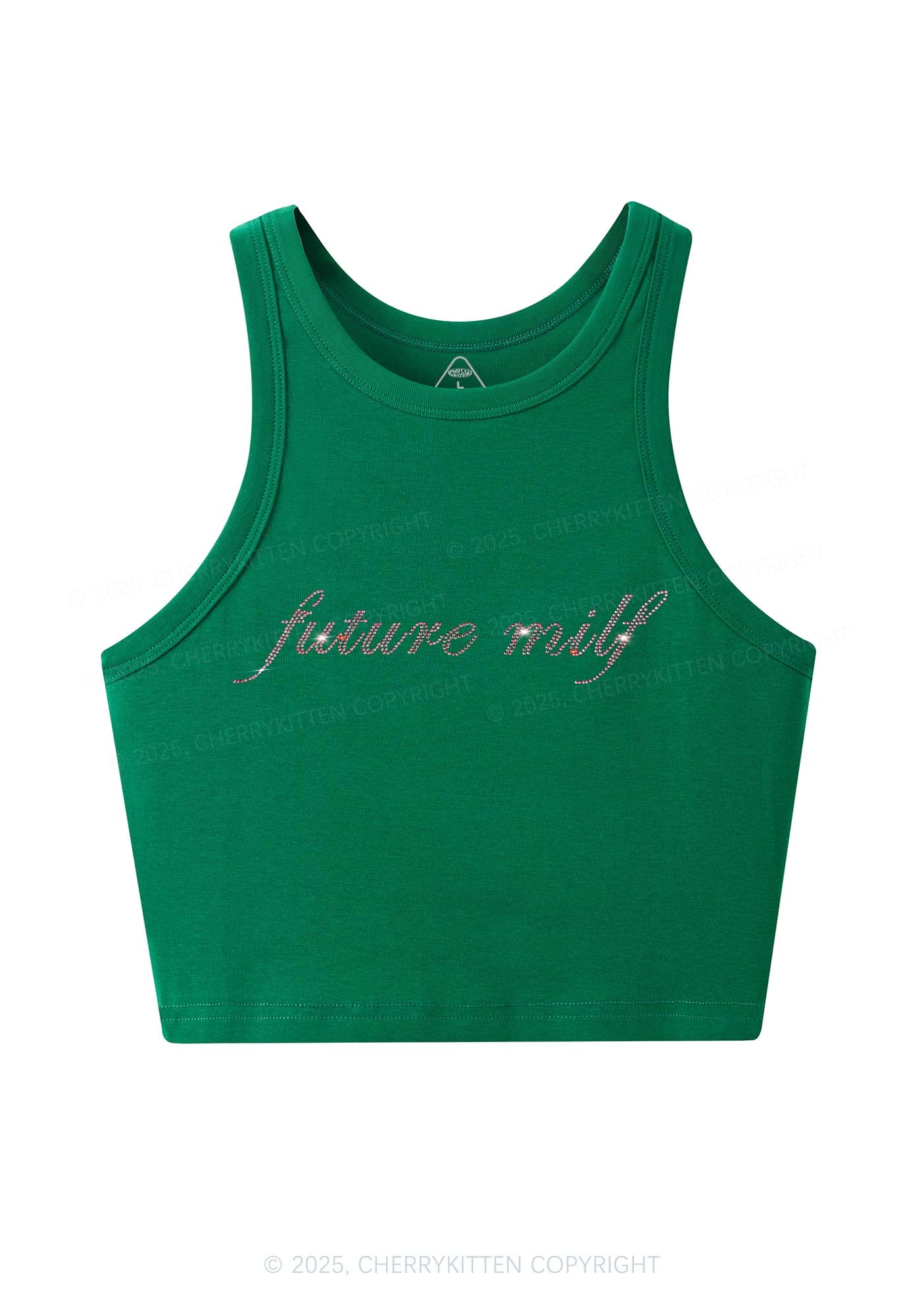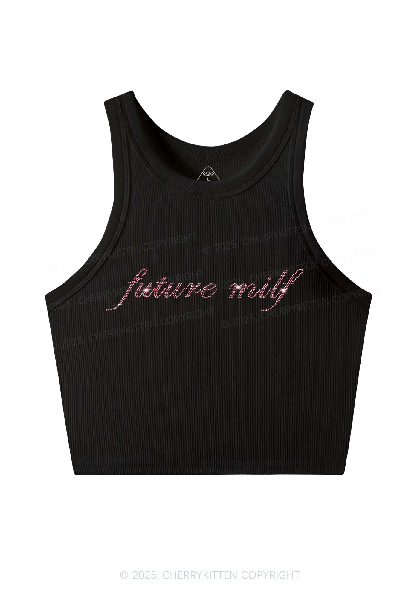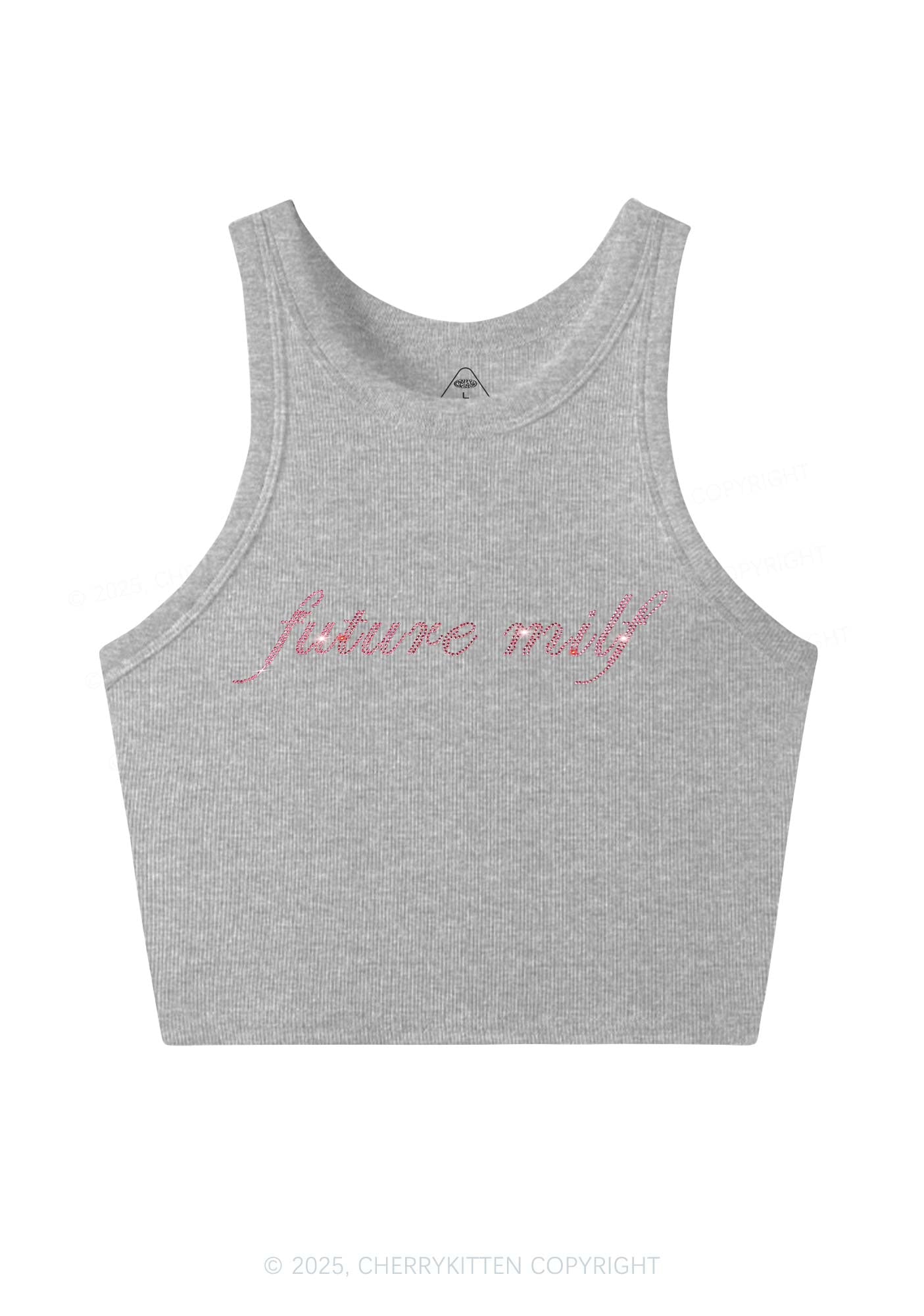 Rhinestone Pink Future Mxxf Y2K Crop Tank Top Cherrykitten