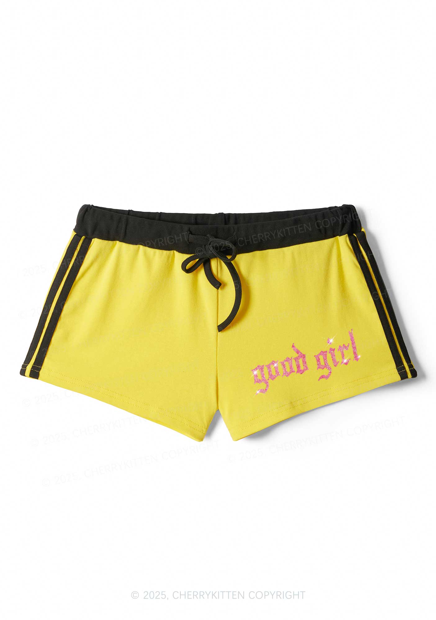 Rhinestone Pink Good Girl Y2K Drawstring Mini Shorts Cherrykitten