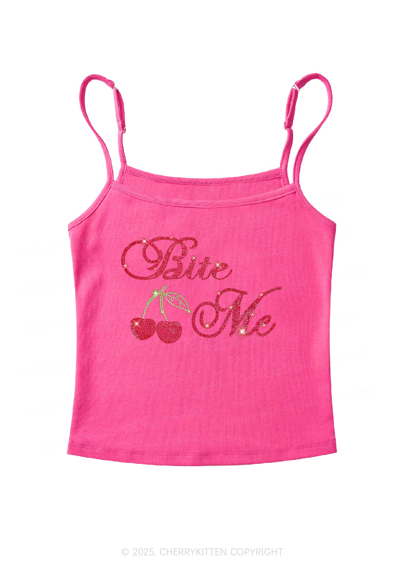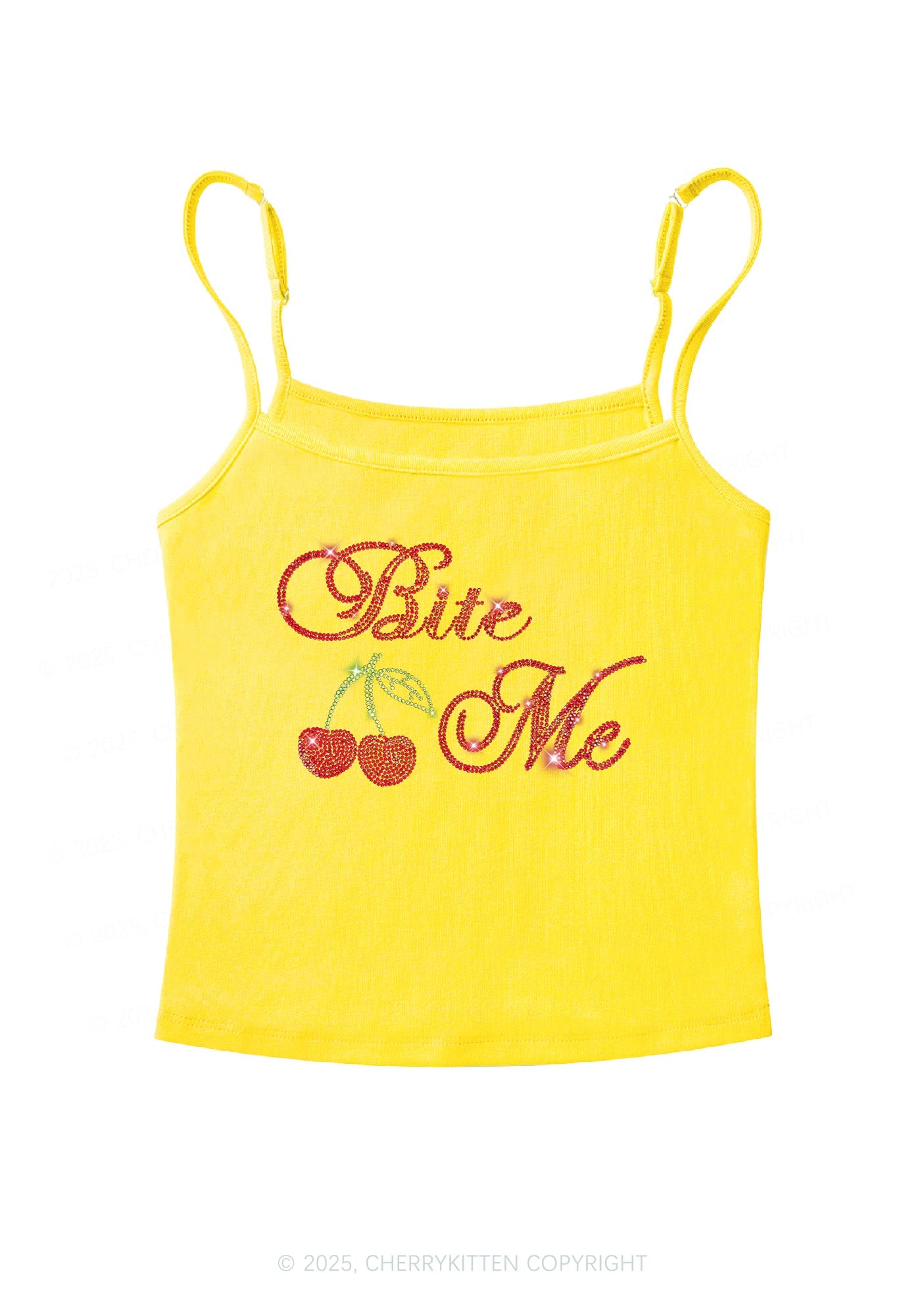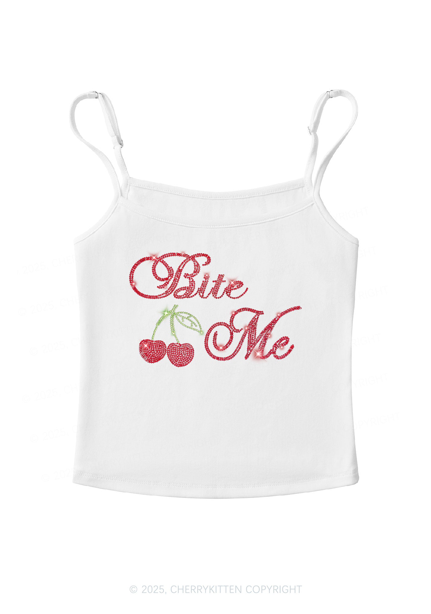 Rhinestone Red Cherry Bite Me Y2K Spaghetti Strap Cami Cherrykitten