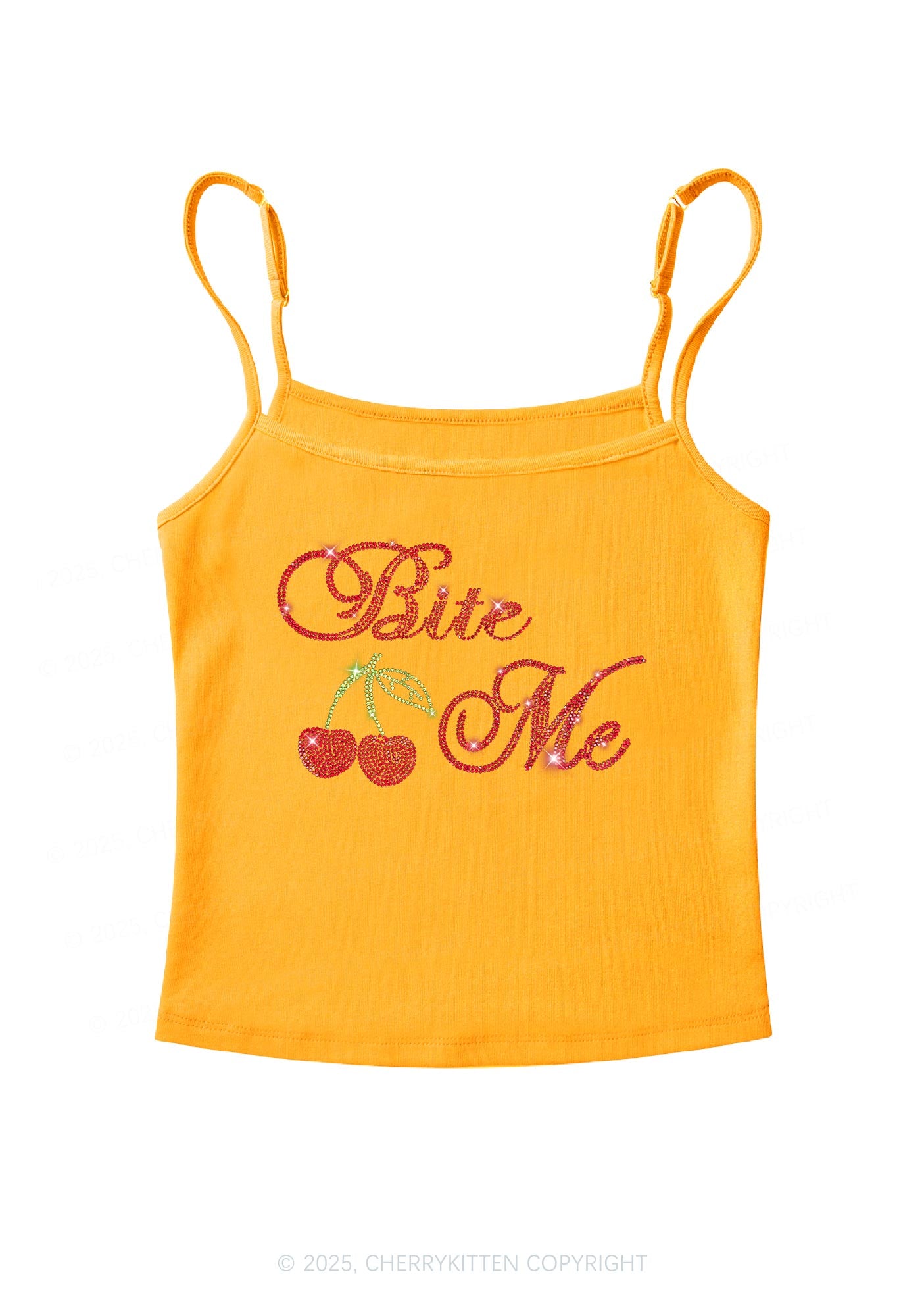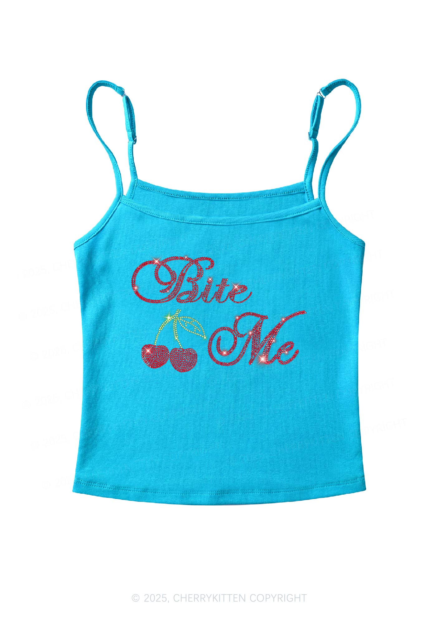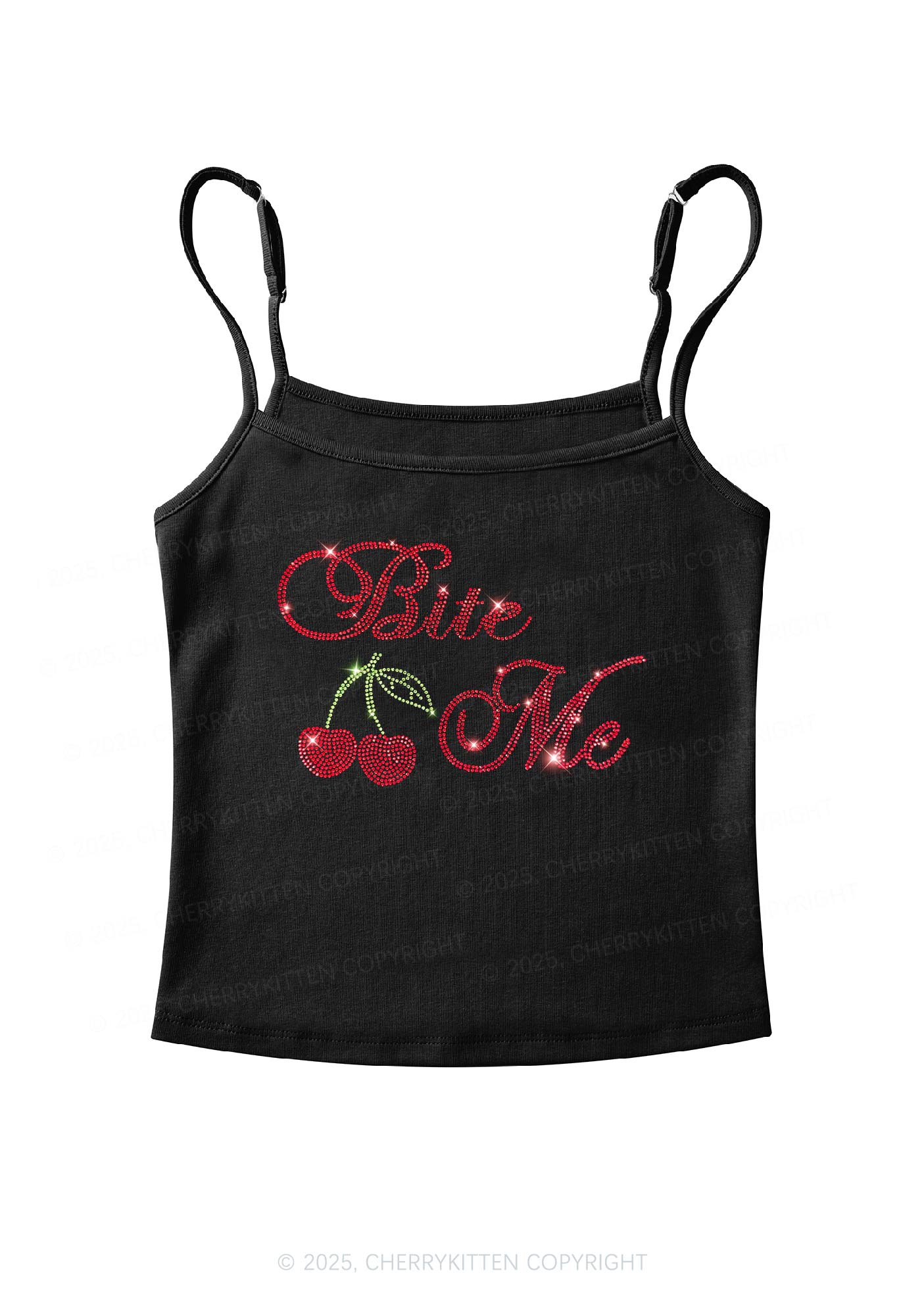 Rhinestone Red Cherry Bite Me Y2K Spaghetti Strap Cami Cherrykitten