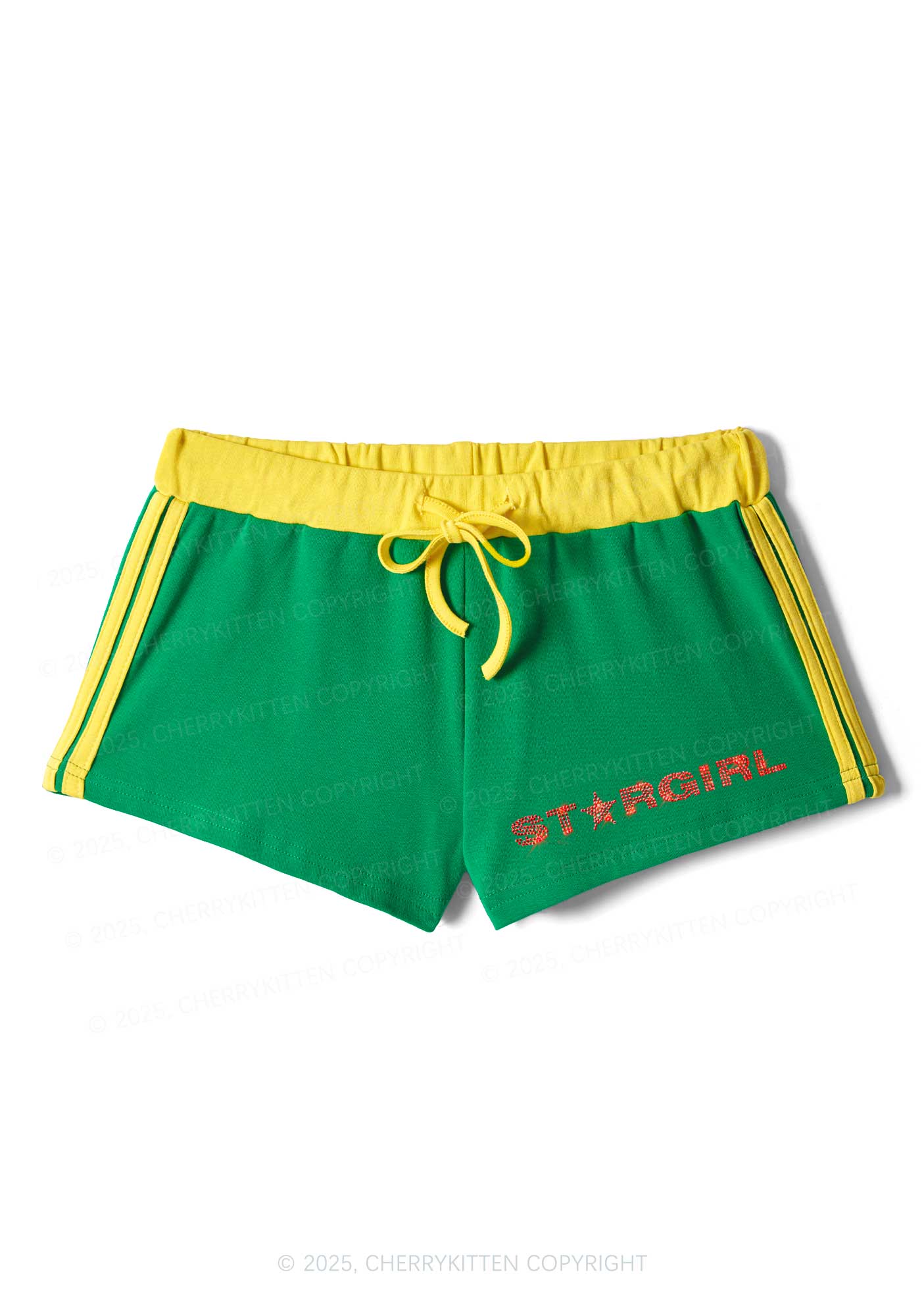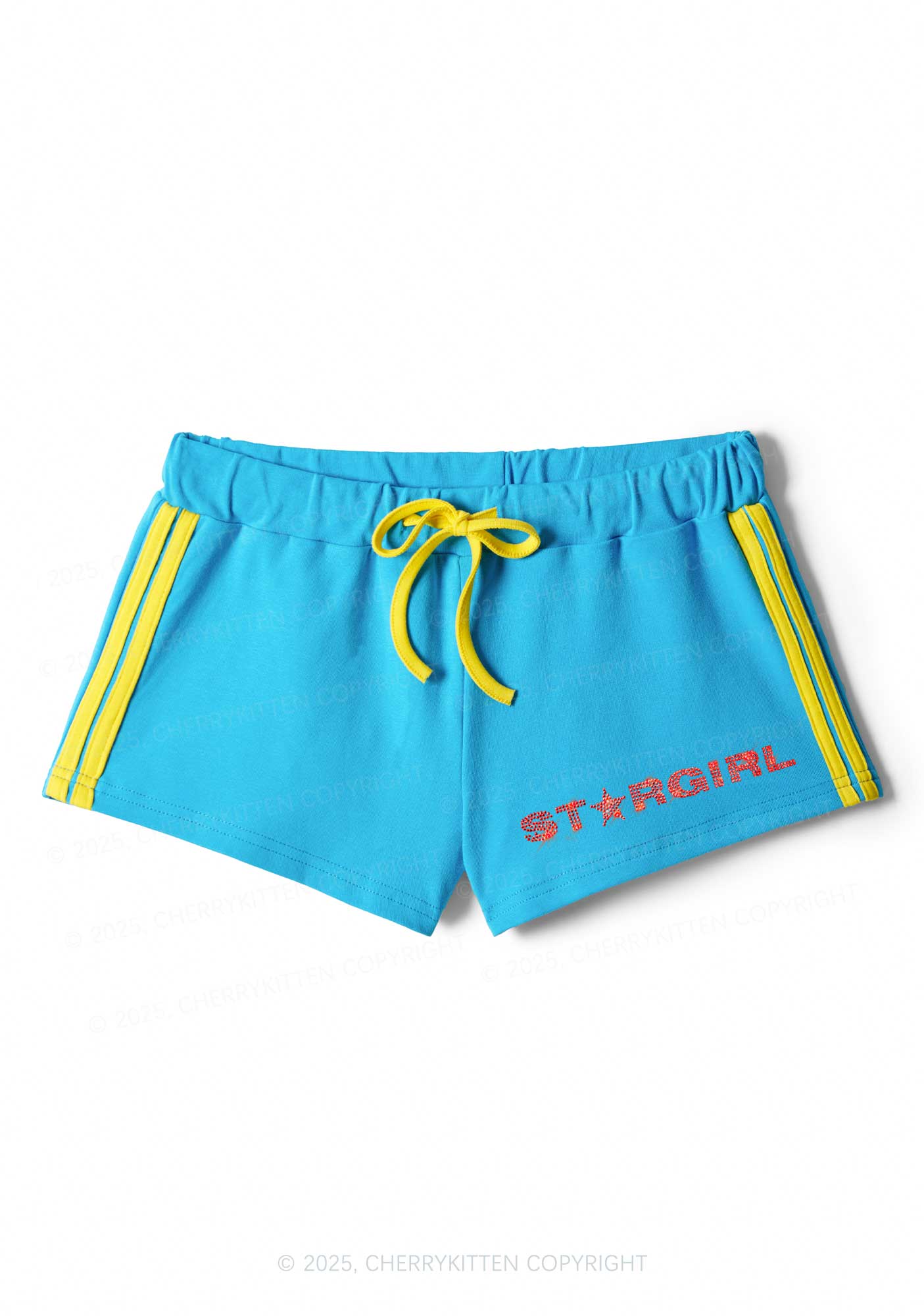 Rhinestone Red Stargirl Y2K Drawstring Mini Shorts Cherrykitten
